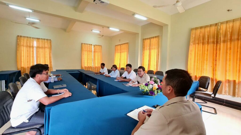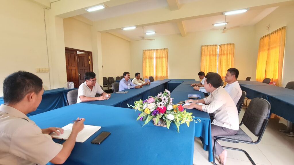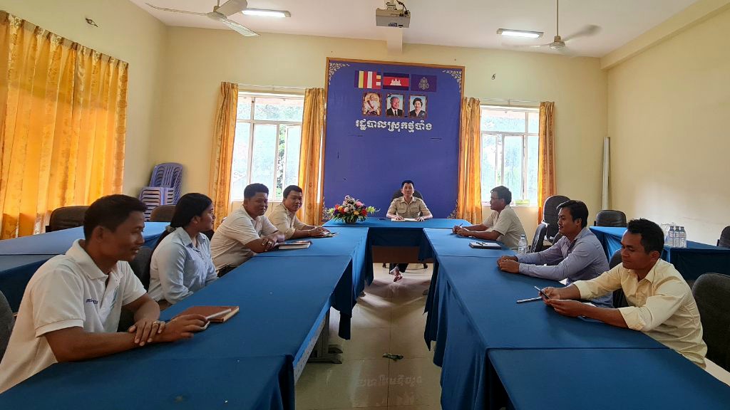 លោក ហេង រតនា នាយករដ្ឋបាលស្រុក បានអញ្ជើញដឹកនាំកិច្ចប្រជុំ បែងចែកការងារដើម្បីត្រៀមរៀបចំពិធីប្រកាសសេចក្តីសម្រេចគណៈកម្មាធិការអតីតយុទ្ធជនកម្ពុជាស្រុកថ្មបាំង នៅសាលប្រជុំសាលាស្រុកថ្មបាំង។