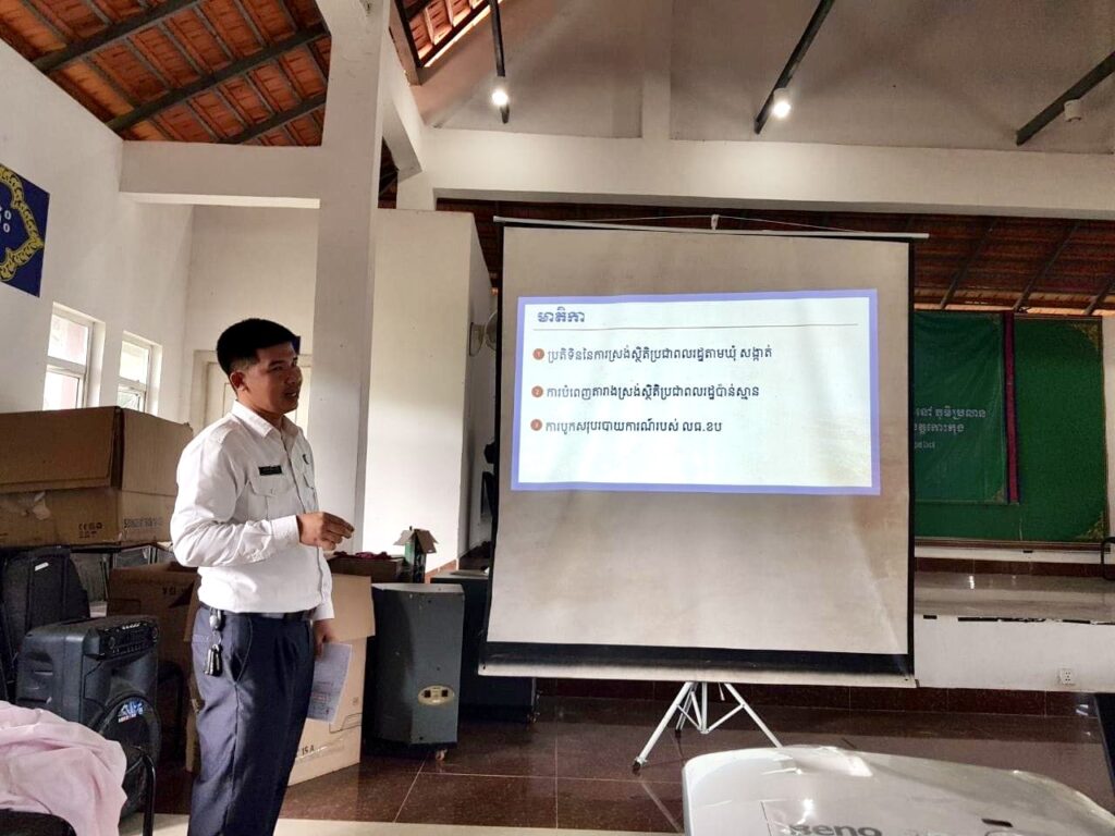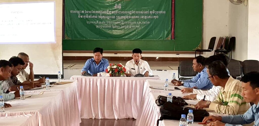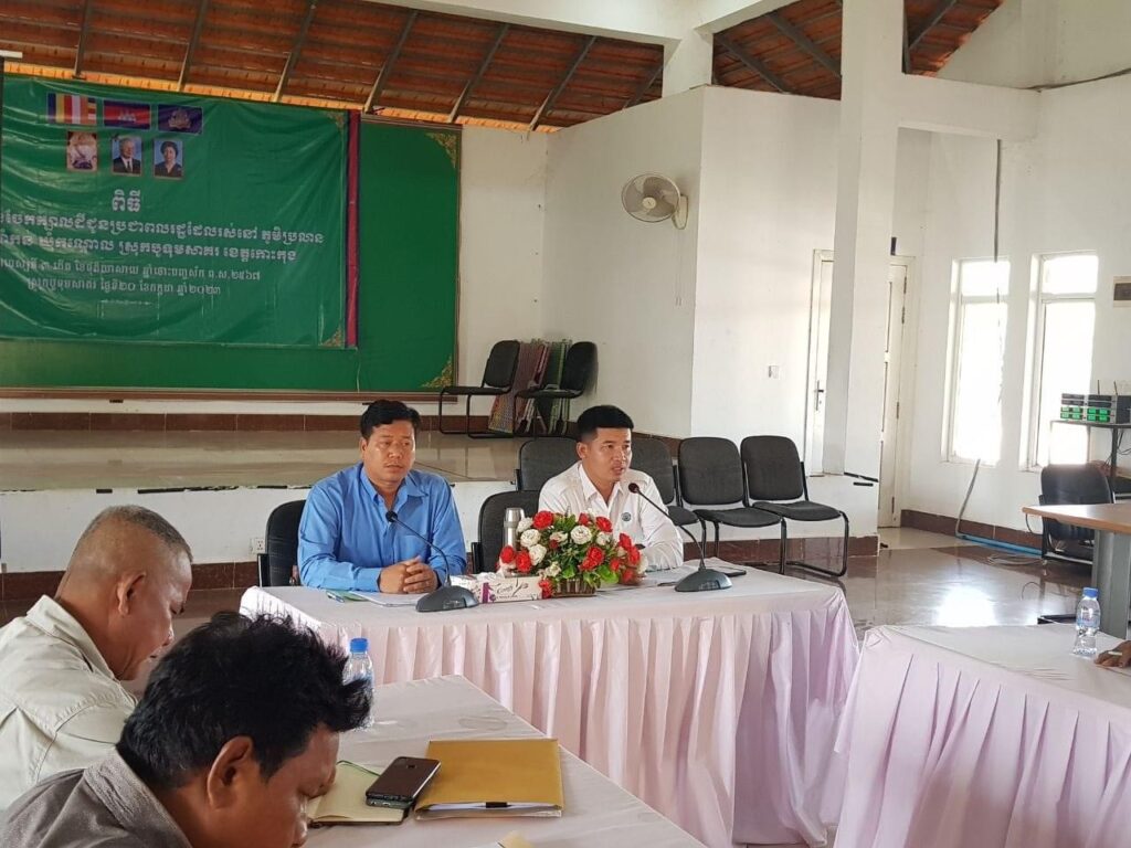 លោក សាង ស៊ីណេត អភិបាលរងស្រុក តំណាង លោក ក្រូច បូរីសីហា អភិបាលស្រុក បានអញ្ជើញជាគណៈអធិបតី ក្នុងកិច្ចប្រជុំស្តីការផ្សព្វផ្សាយ សេចក្ដីណែនាំ និងប្រតិទិននៃការស្រង់ស្ថិតិប្រជាពលរដ្ឋប៉ាន់ស្មាន សម្រាប់បម្រើអោយការពិនិត្យបញ្ជីឈ្មោះ និងការចុះឈ្មោះបោះឆ្នោត ឆ្នាំ២០២៣ ដល់ក្រុមប្រឹក្សាឃុំ ស្មៀនឃុំ នាយប៉ុស្ដិ៍នគរបាលឃុំ ដោយ លោក ភិន ស៊ីផូ ប្រធានរដ្ឋបាលផ្នែកសេវាកម្មច្បាប់ លេខាធិការដ្ឋានរៀបចំការបោះឆ្នោតខេត្តកោះកុង