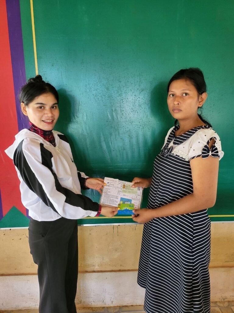 លោកស្រី ឈឹម គឹមអែម ក្រុមប្រឹក្សាឃុំ ទទួលបន្ទុកកិច្ចការស្រ្តីនិងកុមារ បានបើកផ្តល់កាតវីងជូនដល់ស្រ្តី ដែលបានមកពិនិត្យផ្ទៃពោះ នៅមណ្ឌលសុខភាពថ្មស ឈ្មោះ រីន និន អាយុ ២៦ ឆ្នាំ ដែលមានទីលំនៅបច្ចុប្បន្ន ភូមិ ថ្មស ឃុំថ្មស ស្រុក បូទុមសាគរ ខេត្ត កោះកុង ជាស្ត្រីស្ថិតក្នុងគ្រួសារងាយរងគ្រោះ(មានប័ណ្ណសមធម៌)