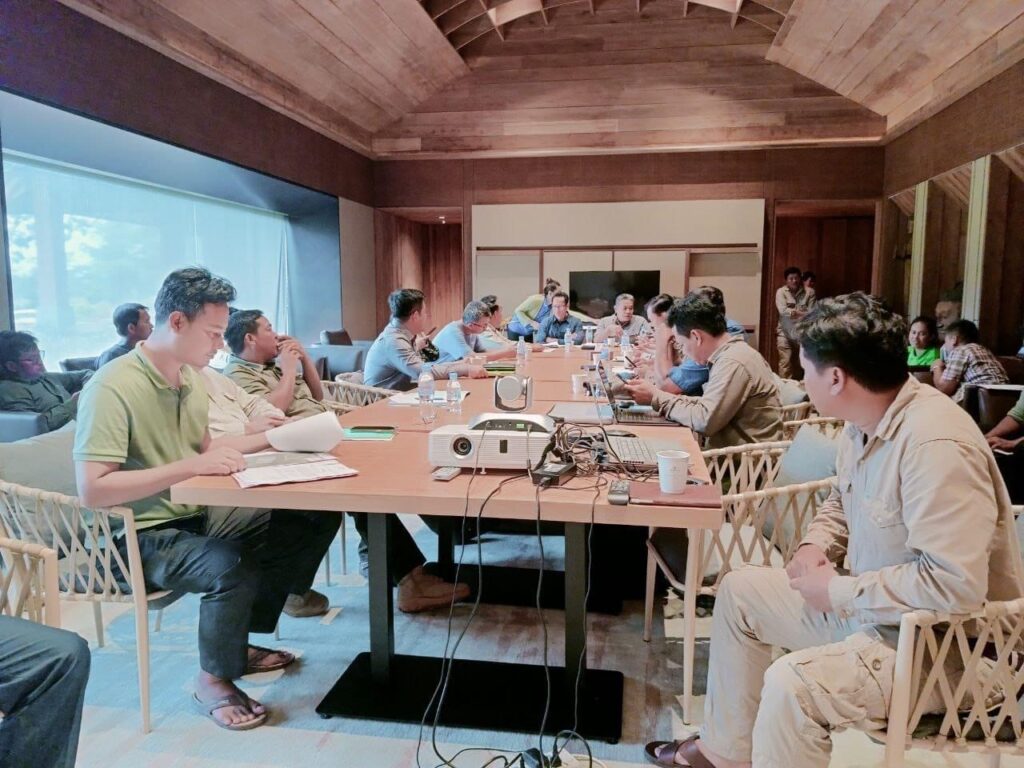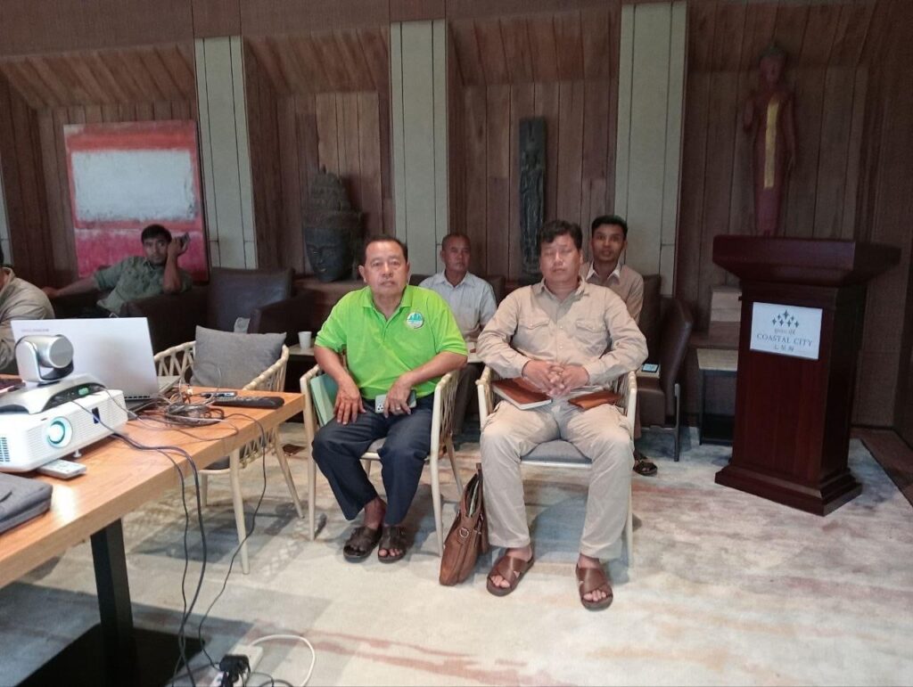 លោក សាង ស៊ីណេត អភិបាលរងស្រុក តំណាងលោកអភិបាលស្រុកដឹកនាំក្រុមការងារចូលរួមកិច្ចប្រជុំពិនិត្យសិក្សាទីតាំងជាក់ស្តែង លើករណីស្នើសុំជួលទីតាំងគម្រោងអភិវឌ្ឍន៍ទេសចរណ៍ផ្សារភ្ជាប់នឹងធម្មជាតិបន្តពីក្រុមហ៊ុន Union Development Group CO.LTD ក្រោមអធិបតីភាពឯកឧត្តម ស្រ៊ុន ដារិទ្ធ រដ្ឋលេខាធិការក្រសួងបរិស្ថាន នៅសាលប្រជុំក្រុមហ៊ុន Union Development Group CO.LTD ឃុំកោះស្តេច ស្រុកគិរីសាគរ ខេត្តកោះកុង។