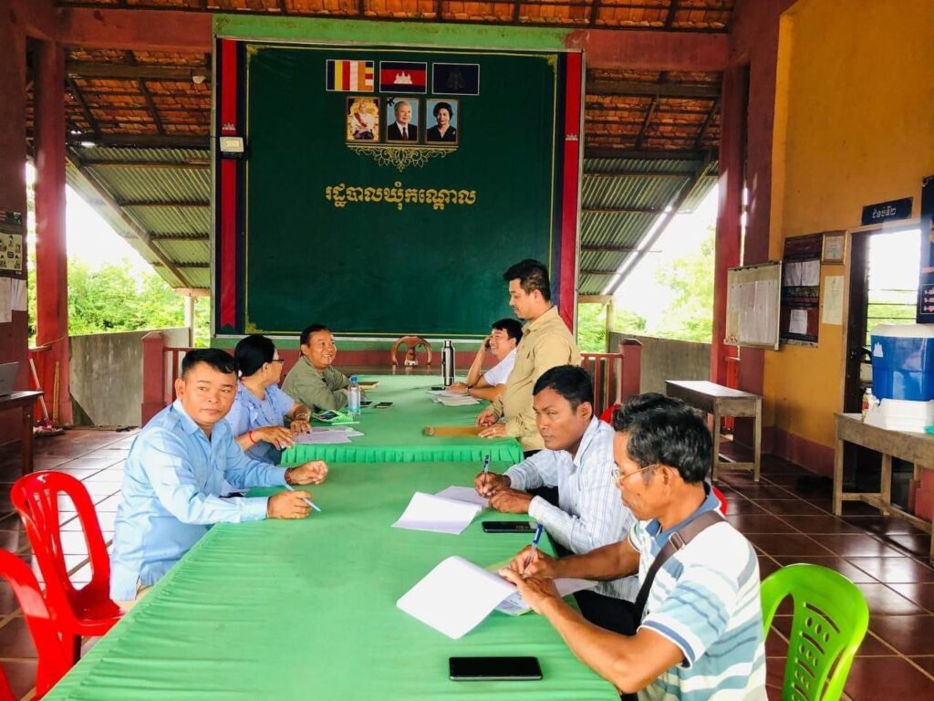 លោក ហ៊ុយ សំណាង មេឃុំកណ្ដោល និងក្រុមប្រឹក្សាឃុំ មេភូមិ សហគមន៍ បានចូលរួមកិច្ចប្រជុំពិភាក្សាស្តីពីការចុះពង្រឹងសហគមន៍ ការពារទំនប់ទឹកប្រៃកណ្តោល