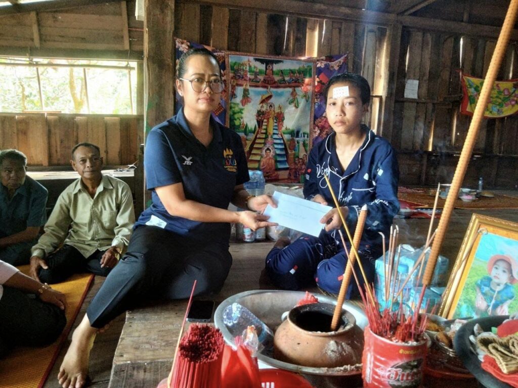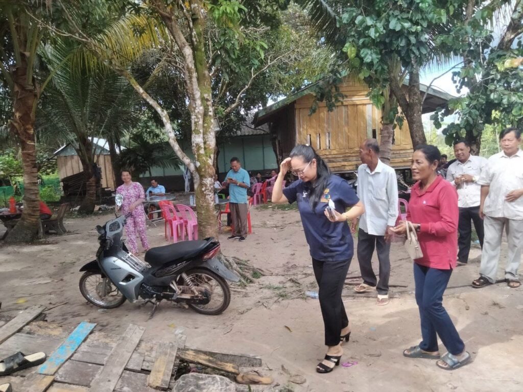 លោកស្រី អ៊ិន សោភ័ណ្ឌ អភិបាលរងស្រុក លោកស្រី នូ សេងគា សមជិកក្រុមប្រឹក្សា និងលោកស្រី សាត សុវណ្ណរ៉េត ប្រធានការីសង្គមកិច្ច និងសុខុមាលភាពសង្គមចូលរួមអមដំណើរលោកស្រី ឈី វ៉ា អភិបាលរងខេត្តកោះកុង និងក្រុមការងារស្រុក ចុះសួរសុខទុក្ខដល់ក្រុមគ្រួសារលោក ប៊ន វាសនា ដែលសត្វ ឱម៉ាក់ទិចកូនស្លាប់កាលពីថ្ងៃទី២២ខែ កញ្ញា ឆ្នាំ២០២៣