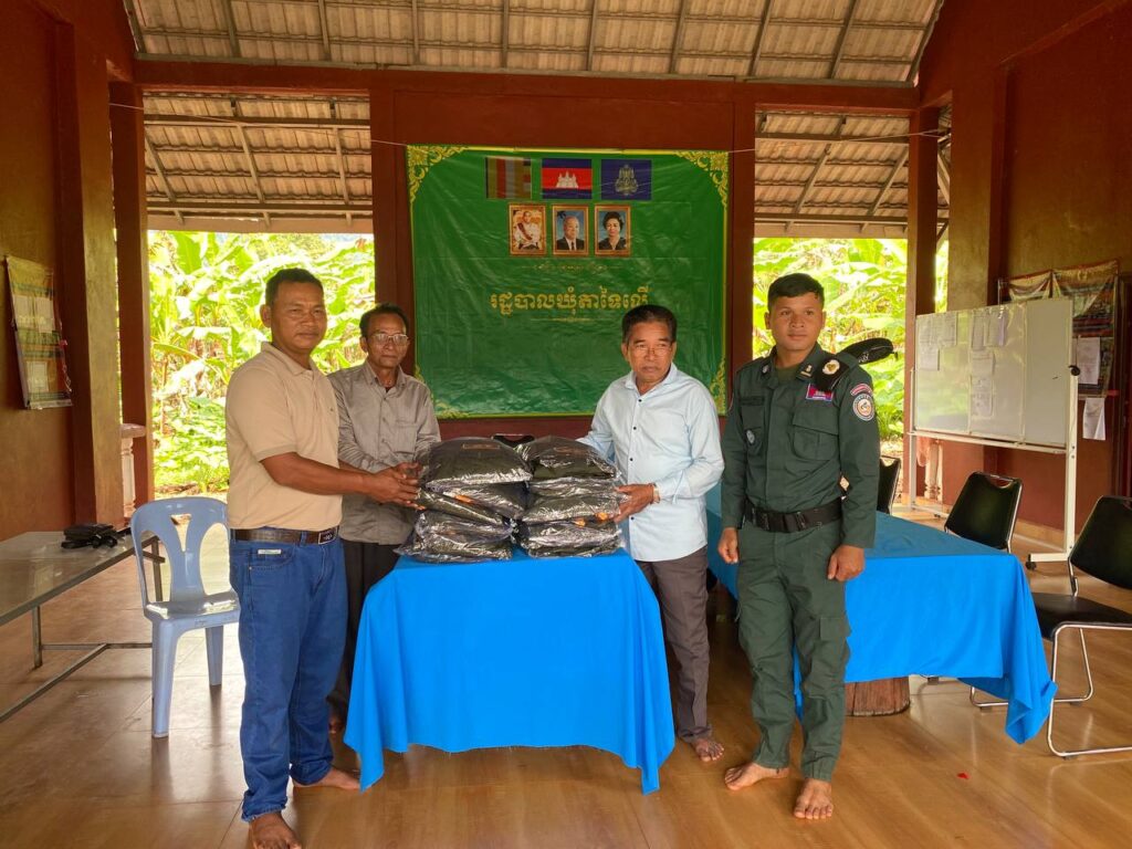 លោក សំ ថន មេឃុំតាទៃលើ បានរៀបចំការចែកឯកសណ្ឋានជូនដល់កងកម្លាំងប្រជាការពារចំនួន១២ នាក់ក្នុងឃុំតាទៃលើ