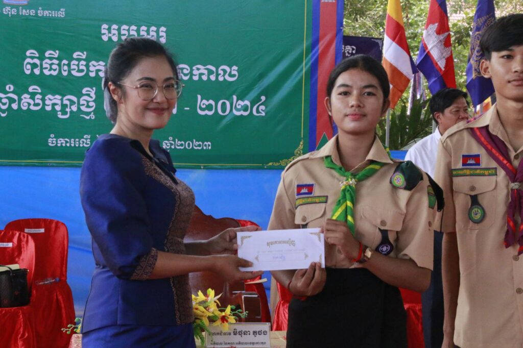 លោកស្រី គ្រី សោភ័ណ ប្រធានក្រុមប្រឹក្សាស្រុក លោក ក្រូច បូរីសីហា អភិបាល នៃគណៈអភិបាលស្រុកបូទុមសាគរ អមដំណើរ លោកជំទាវ មិថុនា ភូថង អភិបាល នៃគណៈអភិបាលខេត្តកោះកុង បានអញ្ជើញចូលរួមជាអធិបតីភាព ក្នុងការបើកបវេសនកាលឆ្នាំសិក្សាថ្មី ២០២៣-២០២៤ នៅវិទ្យាល័យ ហ៊ុន សែន ចំការលើ លោកជំទាវអភិបាលខេត្ត បានអានខ្លឹមសារទាំងស្រុង នូវសារលិខិតសម្តេចមហាបវរធិបតី ហ៊ុន ម៉ាណែត នាយករដ្ឋមន្តី្រ នៃព្រះរាជាណាចក្រកម្ពុជា ថ្លែងក្នុងឱកាសបើក បវសនកាលឆ្នាំសិក្សា ២០២៣-២០២៤។ លោកជំទាវអភិបាលខេត្ត បានមានមតិប្រសាសន៍ផ្តាំផ្ញើ ដល់ លោកគ្រូ អ្នកគ្រូទាំងអស់ សូមបន្តដើរតួជាបុគ្គលនាំមុខ ជាឪពុកម្តាយទី២ ជាមគ្គុទ្ទេសក៍ ជាអ្នក ស្រាវជ្រាវ ជាទីប្រឹក្សា និងជាអ្នកច្នៃប្រឌិត ដោយត្រូវខិតខំប្រឹងប្រែងអភិវឌ្ឍសមត្ថភាពរបស់ខ្លួន ជាប្រចាំទាំងខាងផ្នែកចំណេះដឹង ទាំងវិធីសាស្ត្របង្រៀន រួមទាំងការប្រើប្រាស់បច្ចេកវិទ្យាព័ត៌មាន និងភាសាបរទេស ។ ចំណែកឯ មាតាបិតា អ្នកអាណាព្យាបាល សូមចូលរួមតាមដានលទ្ធផលសិក្សា អត្តចរិត សីលធម៌ សុជីវធម៌ របស់កូនទាំងនៅក្នុងគ្រួសារ សាលារៀន និងសហគមន៍ ព្រមទាំងជួយបង្រៀនកូនបន្ថែមនៅផ្ទះ ឬបង្កលក្ខណៈឱ្យកូនបានសិក្សាបន្ថែមនៅផ្ទះ ជាពិសេសការចូលរួមអានសៀវភៅជាមួយកូន ជាដើម។ បន្ថែមពីលើនេះ មាតាបិតា អ្នកអាណាព្យាបាលត្រូវផ្គត់ផ្គង់សម្ភារសិក្សា ទិញសៀវភៅ លំហាត់ឱ្យកូន សម្រាប់ហ្វឹកហាត់ទាំងនៅសាលារៀន និងនៅផ្ទះចូលរួមគាំទ្រជាសម្ភារៈ ថវិកា ដល់ដំណើរការ បណ្ណាល័យនៅតាមសាលារៀនចូលរួមក្នុងការអភិវឌ្ឍសាលារៀននិងគាំទ្រដល់គ្រូបង្រៀន តាមគ្រប់ លទ្ធភាព។ ប្អូនៗ ក្មួយៗ សិស្សានុសិស្ស យុវជន យុវនារីទាំងអស់ សូមបន្តខិតខំរៀនសូត្រនិងស្រាវជ្រាវ ឱ្យបានខ្ជាប់ខ្ជួននិងចូលរួមធ្វើ “អំពើល្អ” ដើម្បីការរីកចម្រើននៅក្នុងគ្រួសារ សង្គម និងប្រទេសជាតិ យើងទាំងមូល។ ជាមួយនេះដែរ សូមប្អូនៗ ក្មួយៗ សិស្សានុសិស្ស ចងចាំជានិច្ចថា បើយើង ស្រឡាញ់ខ្លួន ស្រឡាញ់ឪពុកម្តាយ និងចង់បានអនាគតរុងរឿង គឺត្រូវនៅឱ្យឆ្ងាយពីគ្រឿងញៀន និងការប្រព្រឹត្តអំពើអបាយមុខផ្សេងៗ ។ ឆ្លៀតក្នុងឱកាសនោះផងដែរ លោកជំទាវអភិបាលខេត្ត បានចូលរួមឧបត្ថម្ភថវិកាផ្ទាល់ខ្លួន ចំនួន ៦.០០០.០០០ រៀល ក្នុងការសាងសង់ហេដ្ឋារចនាសម្ព័ន្ធក្នុងវិទ្យាល័យ ហ៊ុន សែន ចំការលើ ដើម្បីឲ្យវិទ្យាល័យខាងលើនេះ កាន់តែមានសោភ័ណ្ឌភាពកាន់តែមានភាពទាក់ទាញ ។ ដោយមានការចូលរួមពីលោក នាយករដ្ឋបាលសាលាខេត្ត ប្រធាន អនុ មន្ទីរអប់រំ យុវជន និងកីឡាខេត្ត តំណាងមន្ទីរកសិកម្ម រុក្ខាប្រមាញ់ និងនេសាទខេត្តលោះកុង អភិបាលរងស្រុក នាយករដ្ឋបាលសាលាស្រុក កងកម្លាំងប្រដាប់អាវុធ លោក លោកស្រីប្រធានអង្គភាពចំណុះសាលា