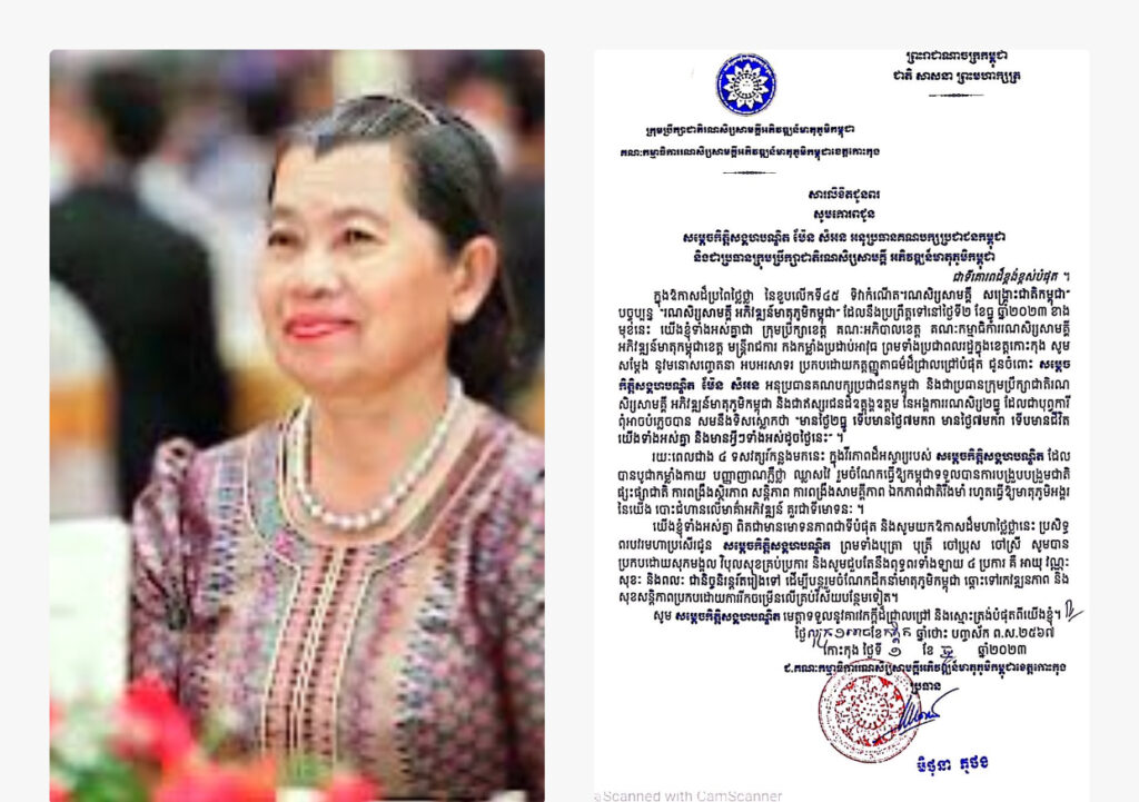 លោកជំទាវ មិថុនា ភូថង ប្រធានគណៈកម្មាធិការរណសិរ្យសាមគ្គី អភិវឌ្ឍន៍មាតិភូមិកម្ពុជាខេត្តកោះកុង គោរពជូនពរសម្ដេចកិត្តិសង្គហបណ្ឌិត ប៉ែន សំអន អនុប្រធានគណបក្សប្រជាជនកម្ពុជា និងជាប្រធានក្រុមប្រឹក្សាជាតិរណសិរ្សសាមគ្គី អភិវឌ្ឍន៏ហតុភូមិកម្ពុជា ជាទីគោរពដ៏ខ្ពង់ខ្ពស់បំផុត ។