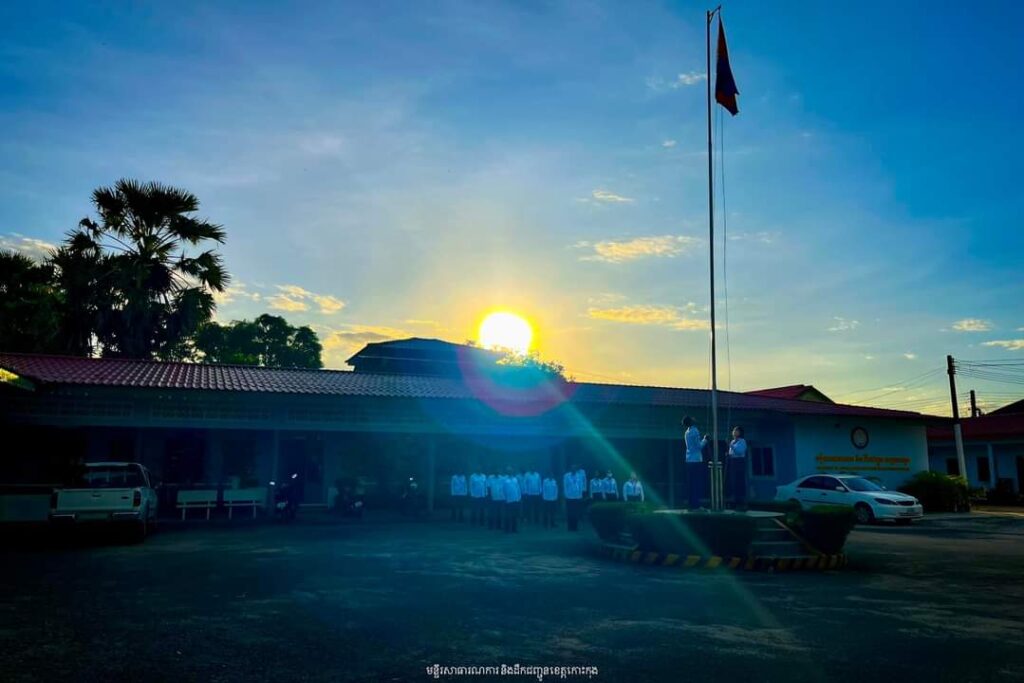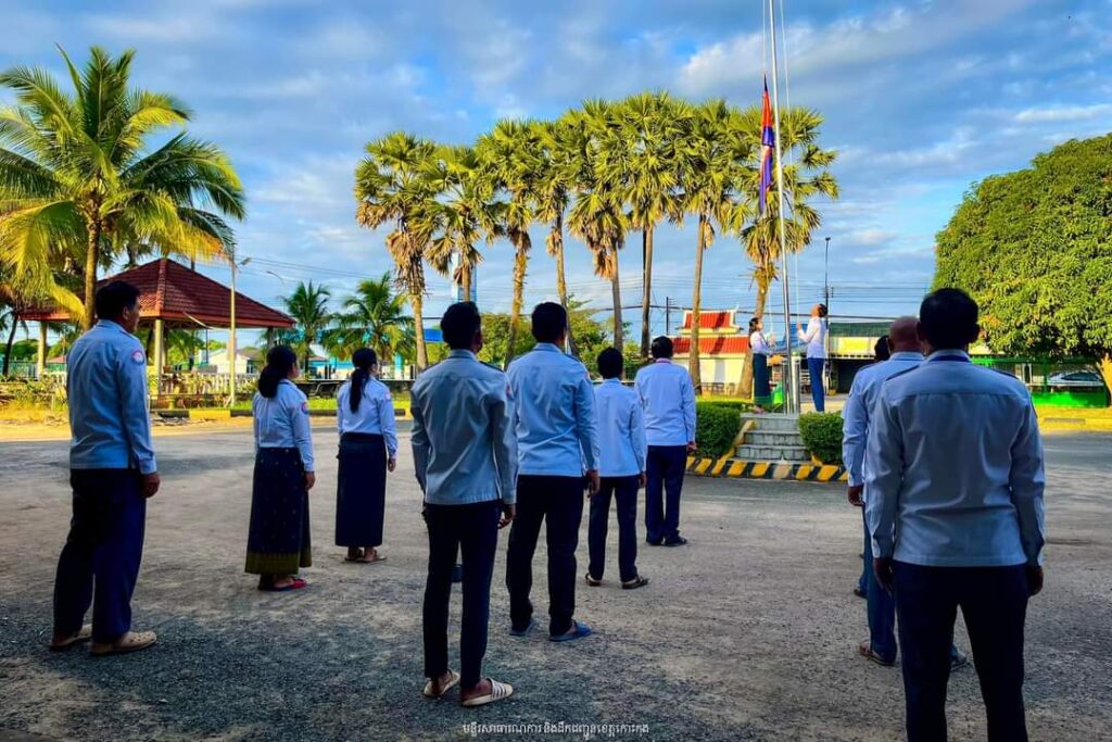 #dpwtkk2023 ៖ នៅបរិវេណដងទង់ជាតិមន្ទីរសាធារណការ និងដឹកជញ្ជូនខេត្តកោះកុង លោក ផាត់ សេង អនុប្រធានមន្ទីរ បានដឹកនាំមន្ត្រីរាជការគោរពទង់ជាតិ នៃព្រះរាជាណាចក្រកម្ពុជា ព្រឹកថ្ងៃចន្ទ ៧រោច ខែកត្តិក ឆ្នាំថោះ បញ្ចស័ក ពុទ្ធសករាជ ២៥៦៧ ត្រូវនឹងថ្ងៃទី០៤ ខែធ្នូ ឆ្នាំ២០២៣