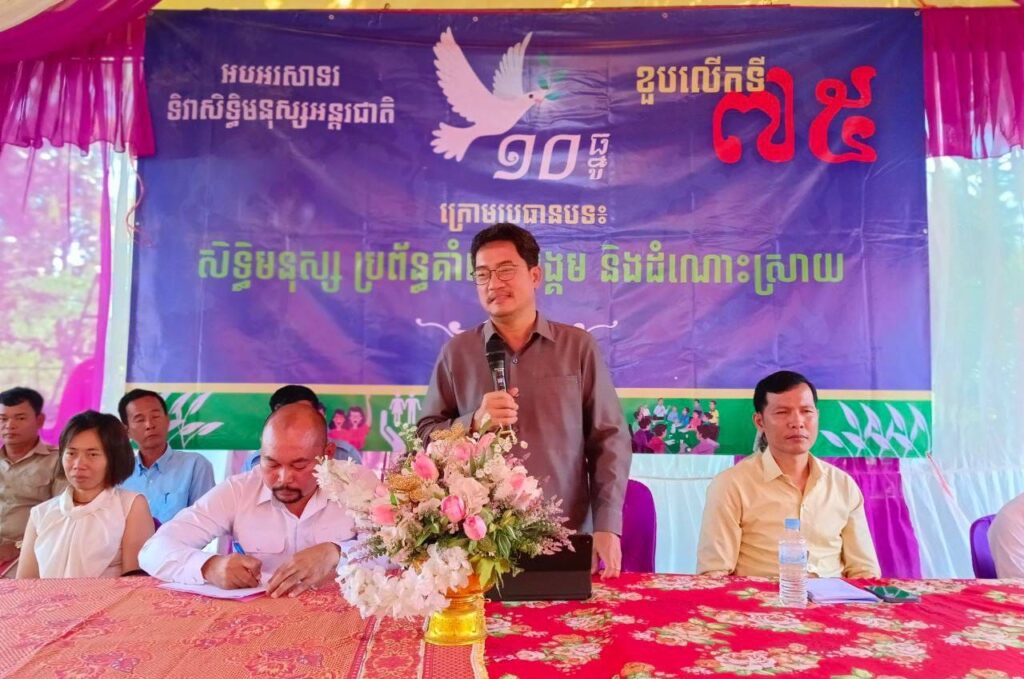 លោក តុង យ៉ាវ អភិបាលរងស្រុក តំណាង លោក ក្រូច បូរីសីហា អភិបាល នៃគណៈអភិបាលស្រុកបូទុមសាគរ បានអញ្ជើញចូលរួមជាគណ:អធិបតី ក្នុងពិធីអបអរសាទរ ទិវាសិទ្ធិមនុស្សអន្តរជាតិ ១០ ធ្នូ ខួបលើកទី៧៥ ក្រោមប្រធានបទ «សិទ្ធិមនុស្ស ប្រព័ន្ធគាំពារសង្គម និងដំណោះស្រាយ» ក្រោមអធិបតីភាព លោក ហាក់ ឡេង អភិបាលរងខេត្តកោះកុង និងមានការចូលរួមពីលោកអភិបាលរងស្រុកស្រែអំបិល នាយទីចាត់ការអន្តរវិស័យសាលាខេត្ត លោកមេឃុំកណ្តោល ជំទប់ទី១ឃុំជីខលើ និងតំណាងអង្គការ សមាគមន៍ជាគណៈអធិបតី ព្រមទាំងមានការចូលរួមពីប្រជាពលរដ្ឋភូមិធ្នង់ ភូមិប្រលាន ភូមិកណ្តោល ភូមិតាំកន់ នៃឃុំកណ្តោល ស្រុកបូទុមសាគរ និងភូមិឈូក ភូមិជីខ ភូមិព្រែកជីក នៃស្រុកស្រែអំបិល ចំនួន៤៥៦នាក់ ស្រី៣៣៩នាក់ ជាសមាជិក។ ពិធីនេះ ធ្វើឡើងនៅគេហដ្ឋាន លោក ជុំ ឈឿន ស្ថិតនៅភូមិកណ្តោល ឃុំកណ្តោល ស្រុកបូទុមសាគរ ខេត្តកោះកុង។
