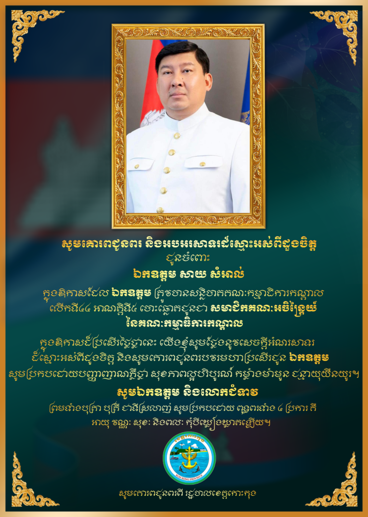 សូមគោរពជូនពរ ពីរដ្ឋបាលខេត្តកោះកុង