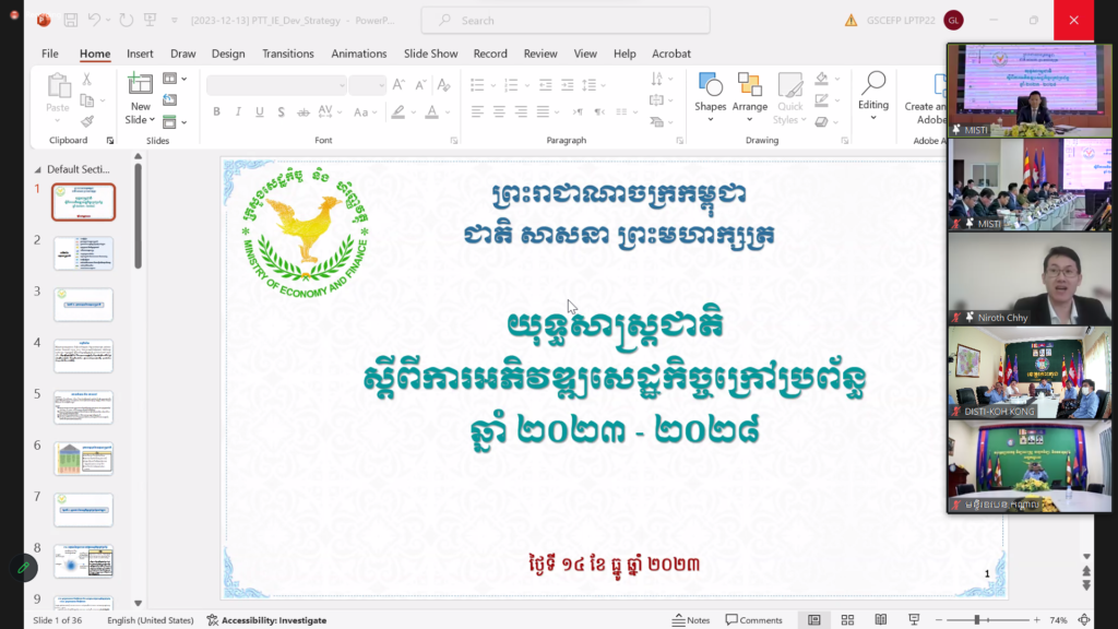 ថ្នាក់ដឹកនាំ និងការិយាល័យជំនាញនៃមន្ទីរឧស្សាហកម្ម​ វិទ្យាសាស្ត្រ​ បច្ចេកវិទ្យា​ និងនវានុវត្តន៍​ ខេត្តកោះកុង បានចូលរួមកិច្ចប្រជុំស្តីពី “ ការជម្រុញការអនុវត្តន៍យុទ្ធសាស្រ្តជាតិស្តីពីការអភិវឌ្ឍសេដ្ឋកិច្ចក្រៅប្រព័ន្ធឆ្នាំ២០២៣-២០២៨។