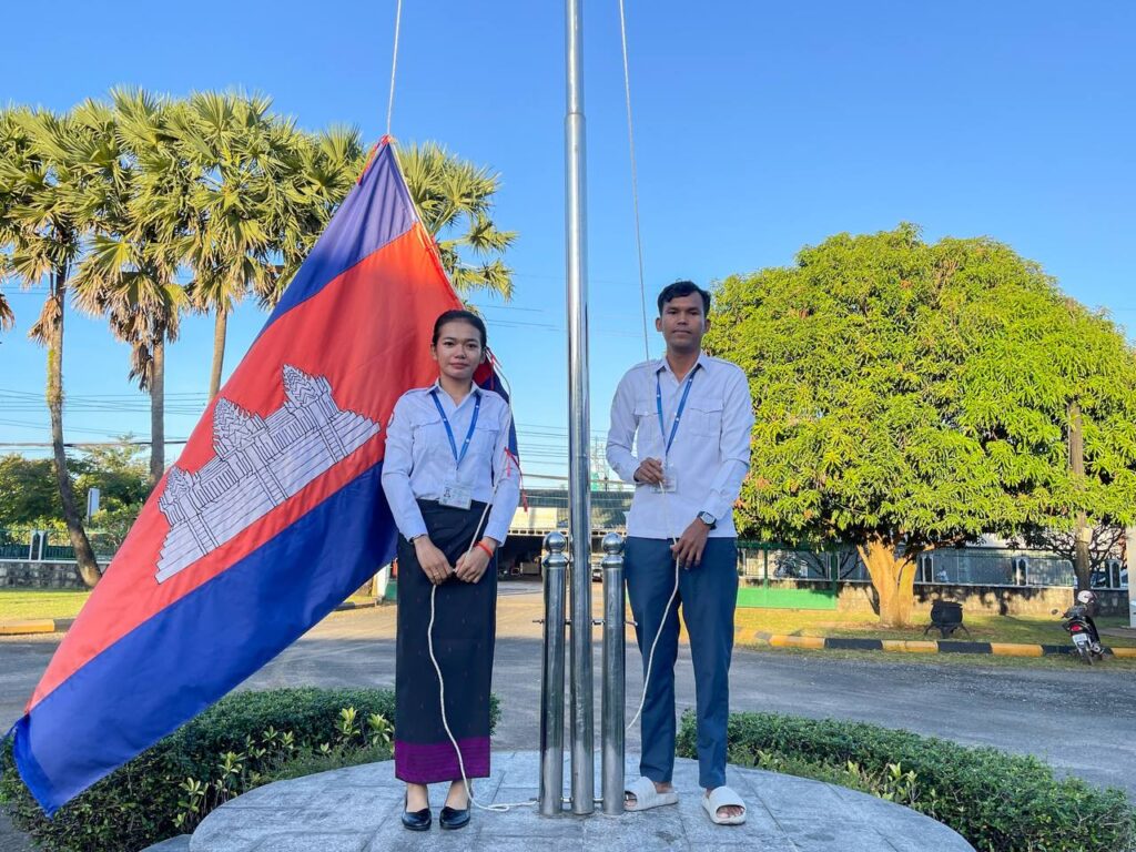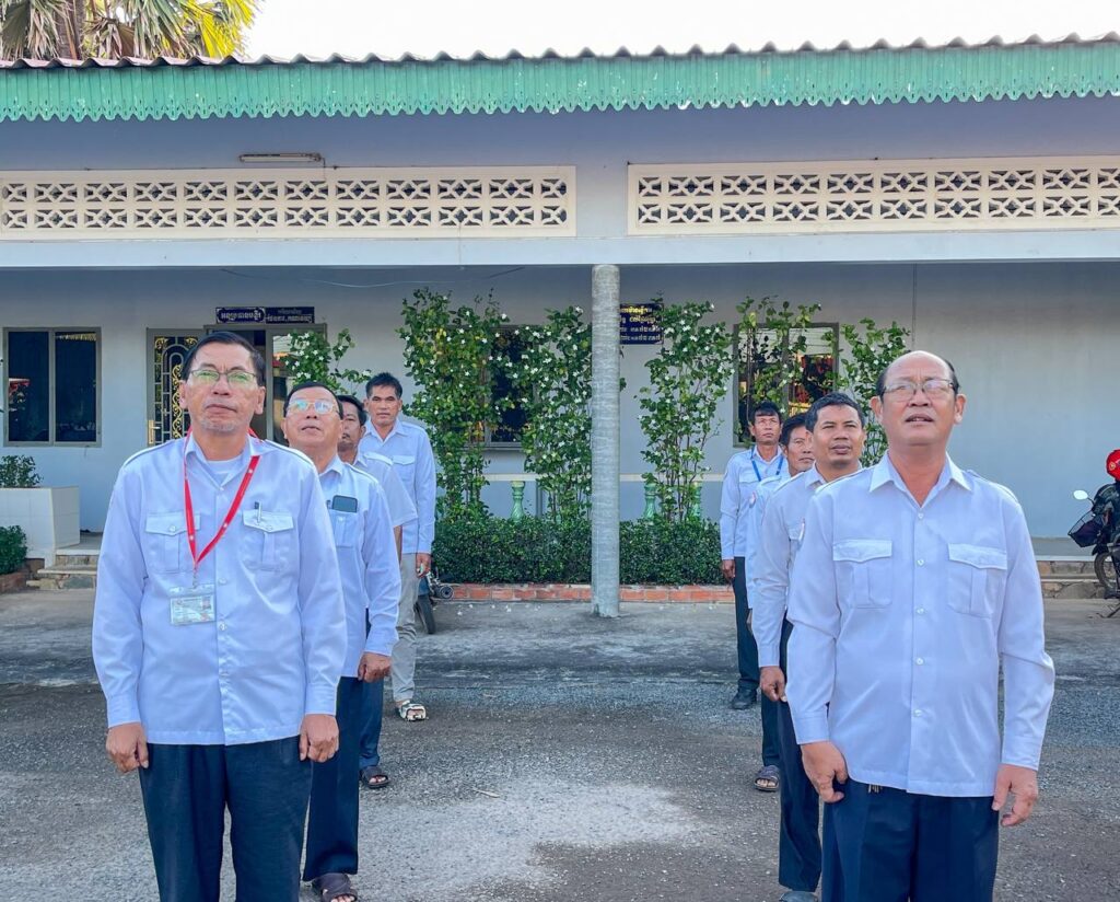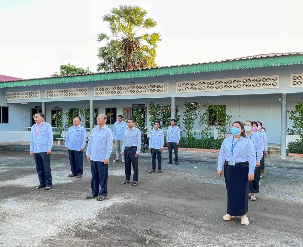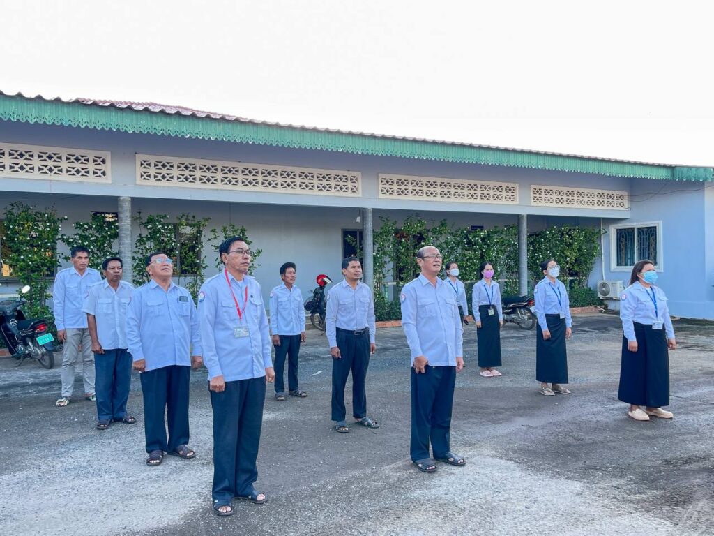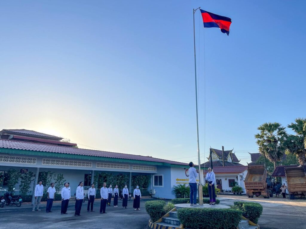 #dpwtkk2023 ៖ នៅបរិវេណដងទង់ជាតិមន្ទីរសាធារណការ និងដឹកជញ្ជូនខេត្តកោះកុង ថ្នាក់ដឹកនាំ និងមន្ត្រីរាជការគោរពទង់ជាតិ នៃព្រះរាជាណាចក្រកម្ពុជា ព្រឹកថ្ងៃចន្ទ ៦កើត ខែមិគសិរ ឆ្នាំថោះ បញ្ចស័ក ពុទ្ធសករាជ ២៥៦៧ ត្រូវនឹងថ្ងៃទី១៨ ខែធ្នូ ឆ្នាំ២០២៣