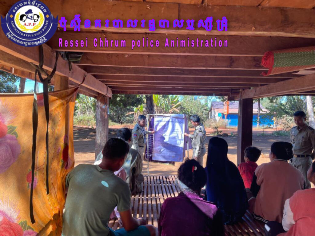 ប៉ុស្ដិ៍នគរបាលរដ្ឋបាលឬស្សីជ្រុំ បានចុះល្បាតក្នុងមូលដ្ឋាន-ផ្ដល់សៀវភៅស្នាក់នៅ(ក២)ជូនប្រជាពលរដ្ឋបាន០១គ្រួសារ និងបានធ្វើវេទិការសារធារណៈ(ស្ដីអំពី ផល់ប៉ះពាល់នៃគ្រឿងញៀន)ដល់ប្រ/រដ្ឋស្ថិតនៅភូមិត្រពាំឈើត្រាវ ឃុំឬស្សីជ្រុំ ស្រុកថ្មបាំង ខេត្តកោះកុង។ សូមអរគុណ!