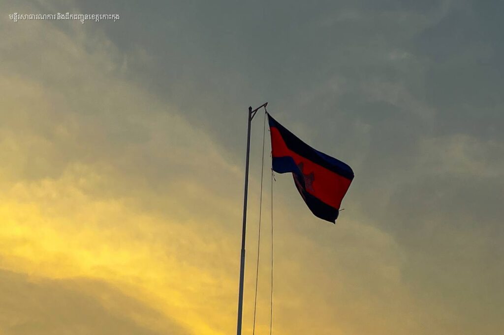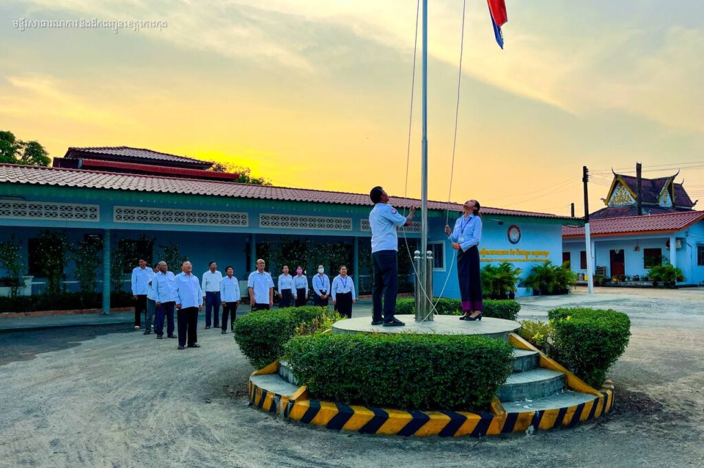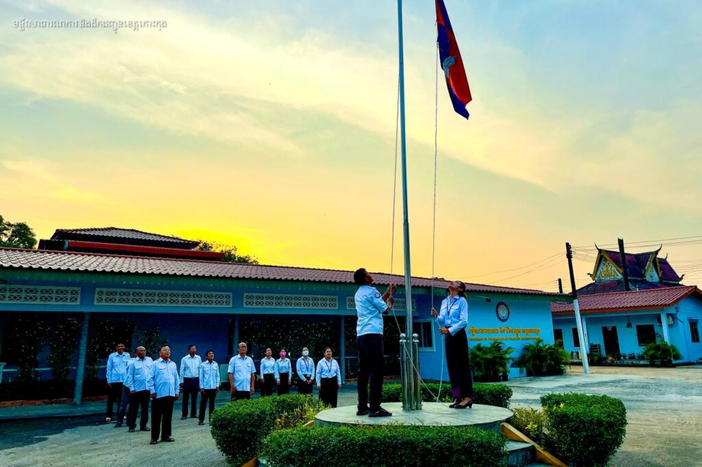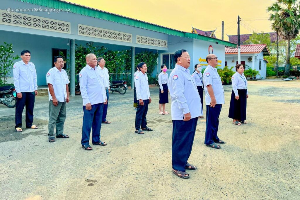ព្រឹកថ្ងៃចន្ទ មន្ត្រីរាជការមន្ទីរសាធារណការ និងដឹកជញ្ជូនខេត្តកោះកុង គោរព​ទង់ជាតិ ព្រះរាជាណាចក្រកម្ពុជា