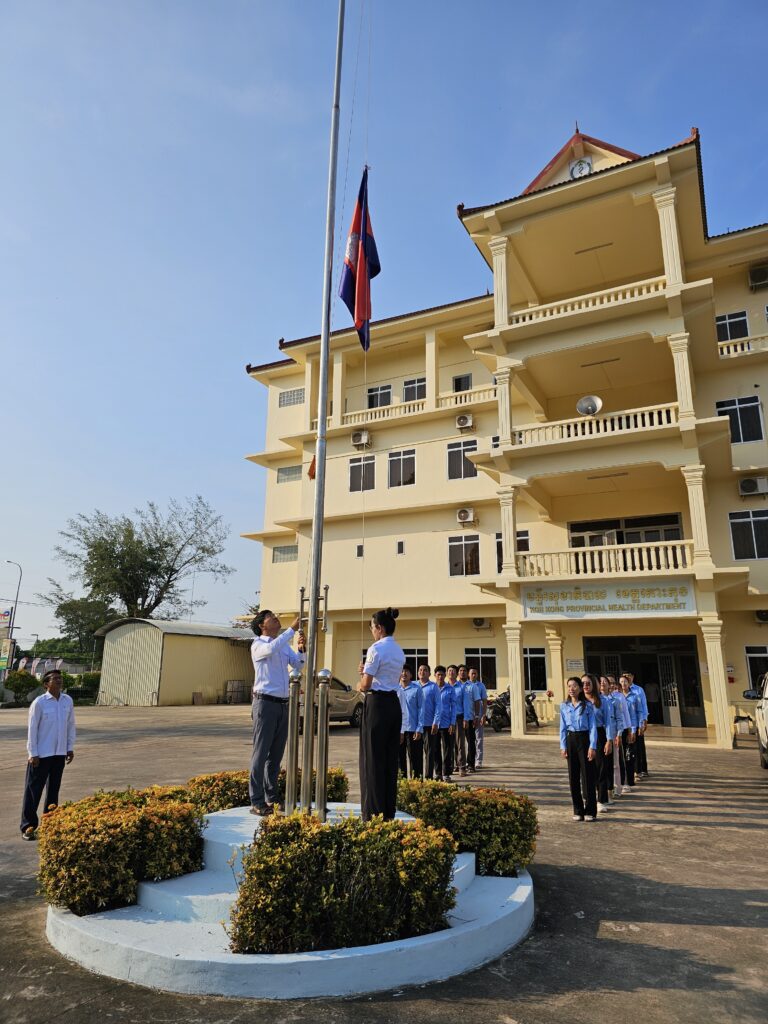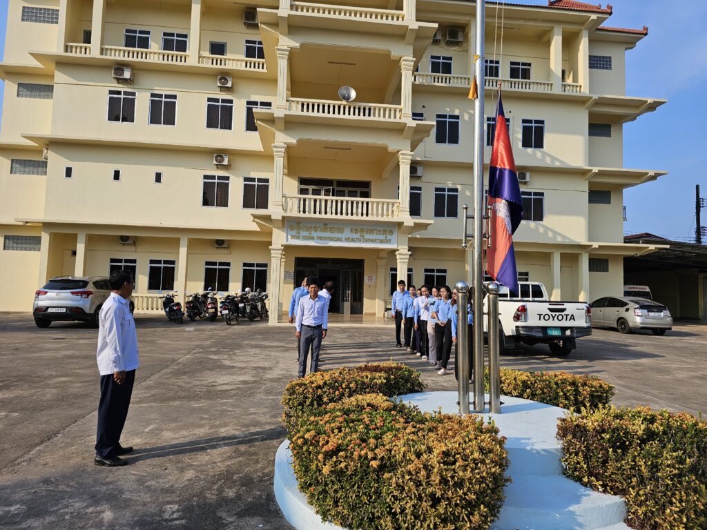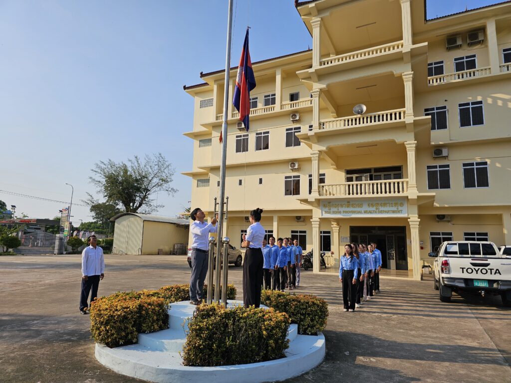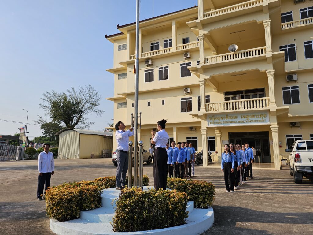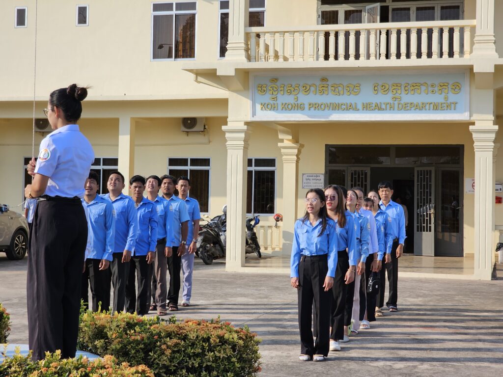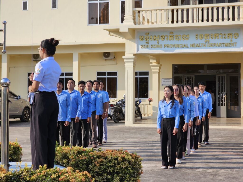 មន្ទីរសុខាភិបាលនៃរដ្ឋបាលខេត្តកោះកុង បានរៀបចំពិធីគោរពទង់ជាតិនៃព្រះរាជាណាចក្រកម្ពុជា នៅទីធ្លាខាងមុខអគារមន្ទីរសុខាភិបាលខេត្ត