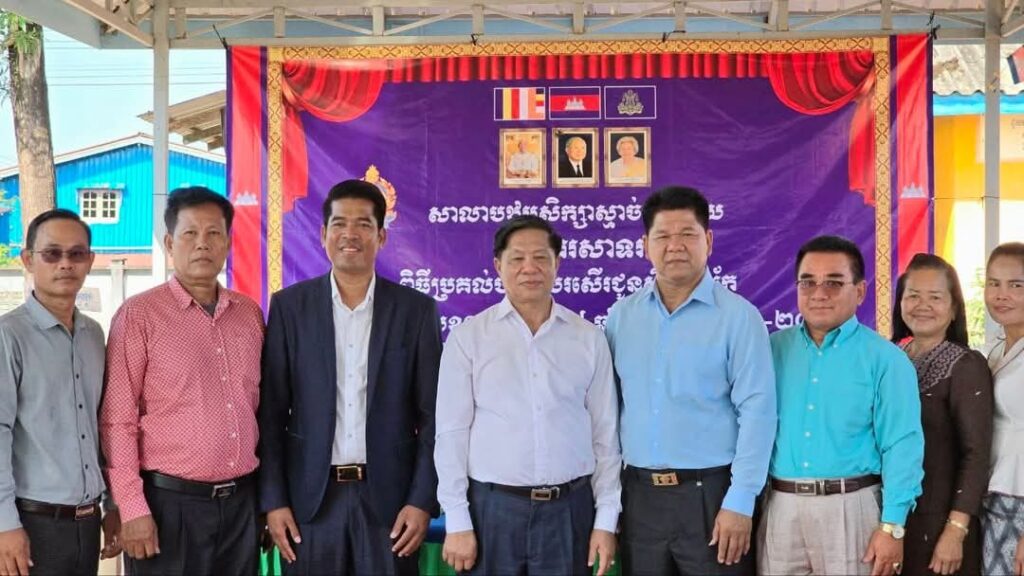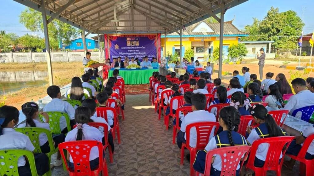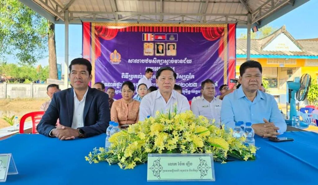 លោក ឈឹម ចិន អភិបាលស្ដីទី នៃគណៈអភិបាលក្រុងខេមរភូមិន្ទ បានអញ្ជើញចូលរួមជាគណ:អធិបតី ក្នុងពិធីប្រគល់បណ្ណសរសើរជូនដល់សិស្សពូកែ និងពិនិត្យមើលសមិទ្ធផលនានាក្នុងសាលាបឋមសិក្សាស្មាច់មានជ័យ ស្ថិតនៅសង្កាត់ស្មាច់មានជ័យ ក្រុងខេមរភូមិន្ទ ខេត្តកោះកុង។