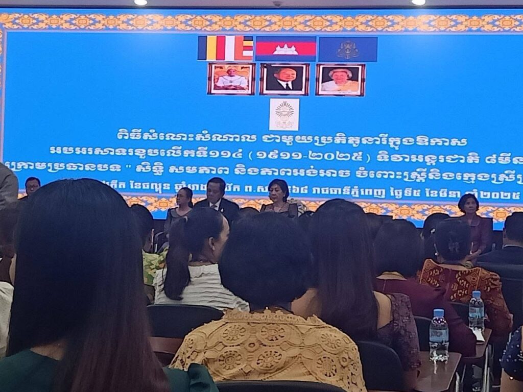 លោកស្រី គ្រី សោភ័ណ ប្រធានក្រុមប្រឹក្សាស្រុកបូទមសាគរ បានអញ្ជើញចូលរួមពិធីសំណេះសំណាល ជាមួយប្រតិភូនារីក្នុងឱកាស អបអរសាទរខួបលើកទី១១៤(១៩១១-២០២៥) ទិវាអន្តរជាតិ ៨មីនា ក្រោមប្រធានបទ «សិទ្ធិ សមភាព និងភាពអង់អាច ចំពោះស្ត្រីនិងក្មេងស្រីគ្រប់រូប»ក្រោមអធិបតីភាពដ៏ខ្ពង់ខ្ពស់ឯកឧត្តម អ៊ុច បូររិទ្ធ អនុប្រធានទី១ព្រឹទ្ធសភា និងជាតំណាង ដ៏ខ្ពង់ខ្ពស់ សម្តេចអគ្គមហាសេនាបតីតេជោ ហ៊ុន សែន ប្រធានព្រឹទ្ធសភា នៃព្រះរាជាណាចក្រកម្ពុជា នៅវិមាន ៧មករា (ជាន់ទី១)។
