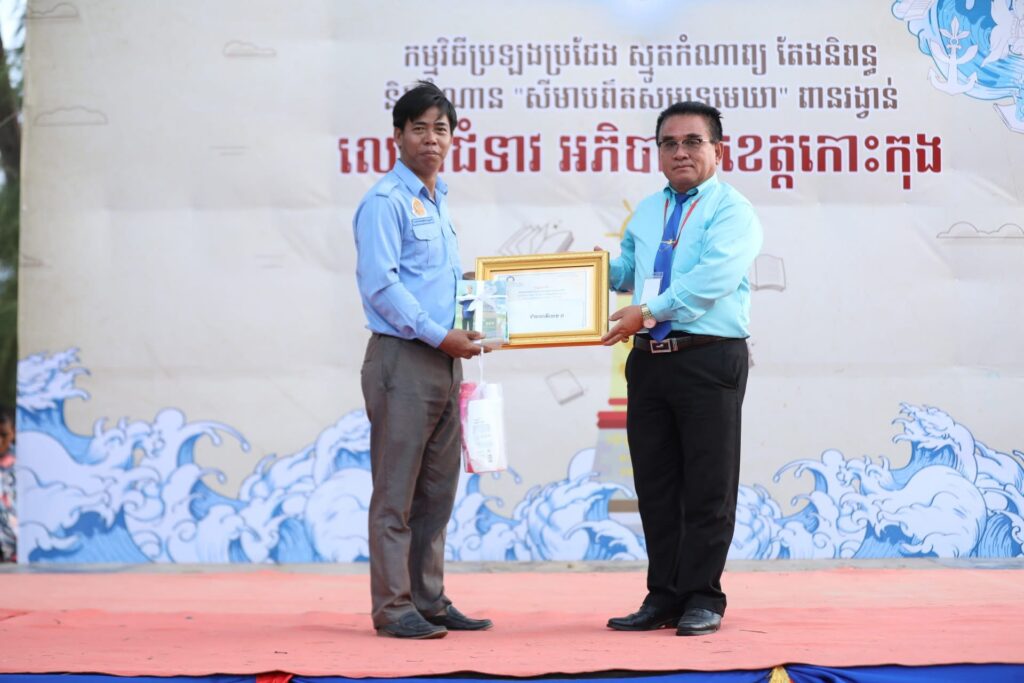 លោក ក្រូច បូរីសីហា អភិបាល នៃគណៈអភិបាលស្រុក បានអញ្ជើញចូលរួមកម្មវិធីប្រកាសជ័យលាភី ព្រឹត្តិការណ៍ ប្រឡងប្រជែង ស្មូតកំណាព្យ តែងនិពន្ធ និងអំណាន ” សីមាបព៌តសមុទ្រមេឃា ” ក្រោមប្រធានបទ”ការអានផ្សារភ្ជាប់អន្តរជំនាន់មនុស្សក្នុងសង្គម” ក្រោមគំនិតផ្ដួចផ្ដើមដោយ លោកជំទាវ មិថុនា ភូថង អភិបាលខេត្ត និងជាប្រធាន ស ស យ ក ខេត្តកោះកុង ដែលរៀបចំនៅនៅទីធ្លាឆ្នេរសមុទ្រប៉ាក់ខ្លង ស្រុកមណ្ឌលសីមា ខេត្តកោះកុង