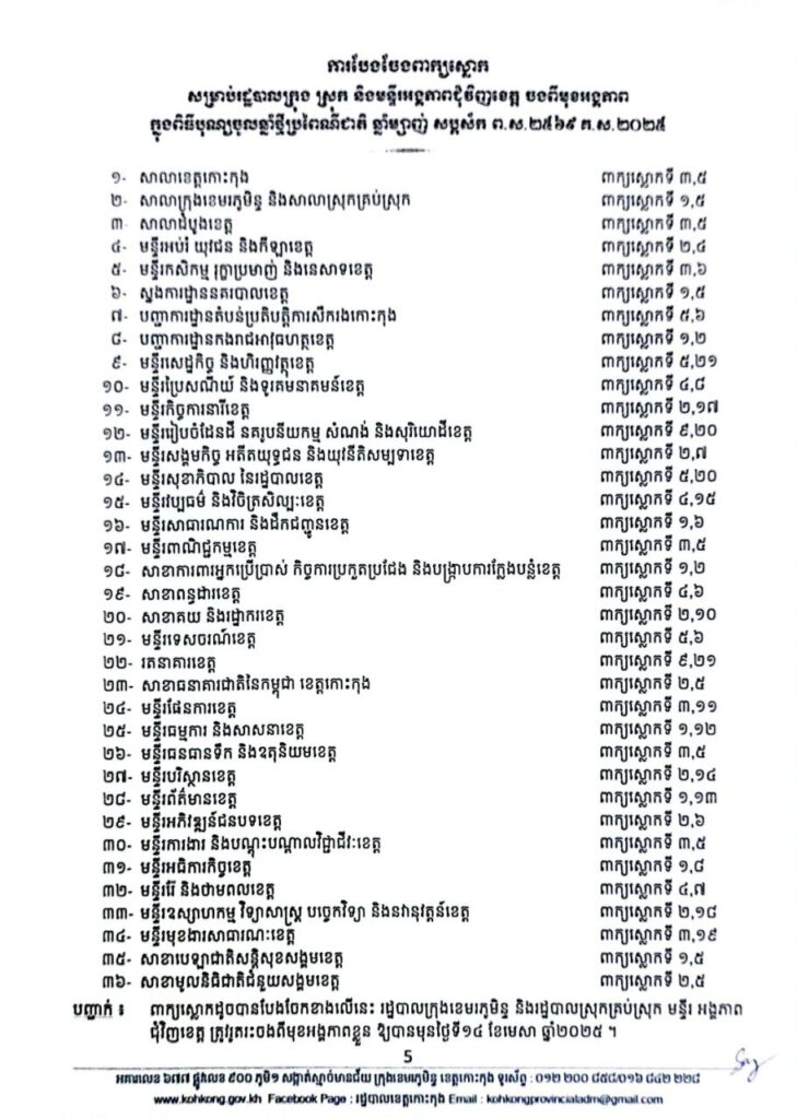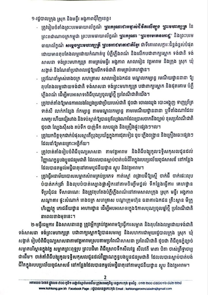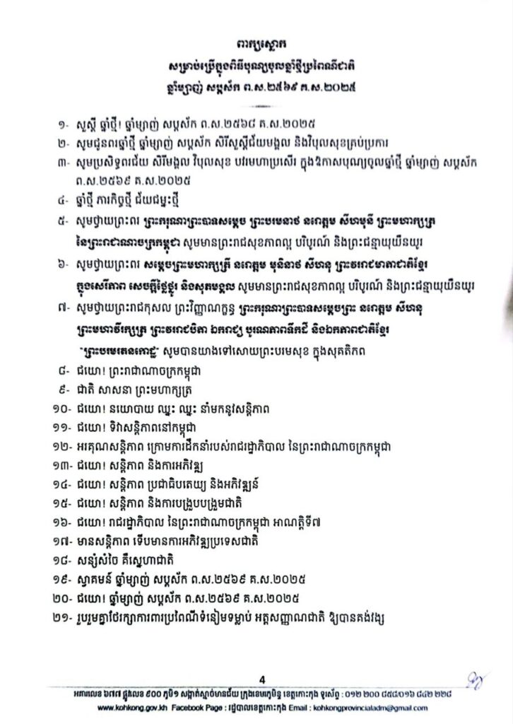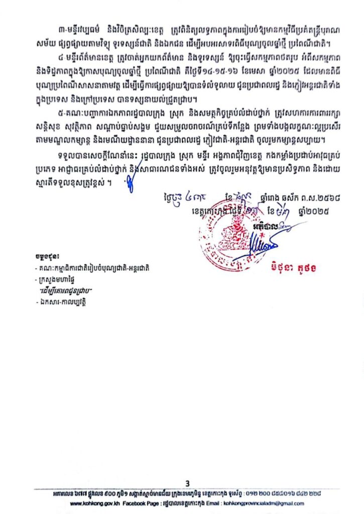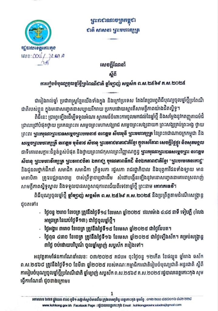 សេចក្តីណែនាំ ស្តីពីការរៀបចំបុណ្យចូលឆ្នាំថ្មីប្រពៃណីជាតិ ឆ្នាំម្សាញ់ សប្តស័ក ព.ស.២៥៦៩ គ.ស.២០២៥