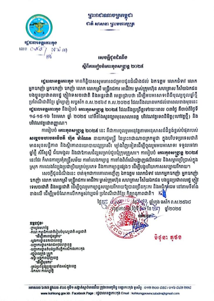 សេចក្តីជូនដំណឹង ស្តីពីការរៀបចំកោះកុងសង្ក្រាន្ត ២០២៥