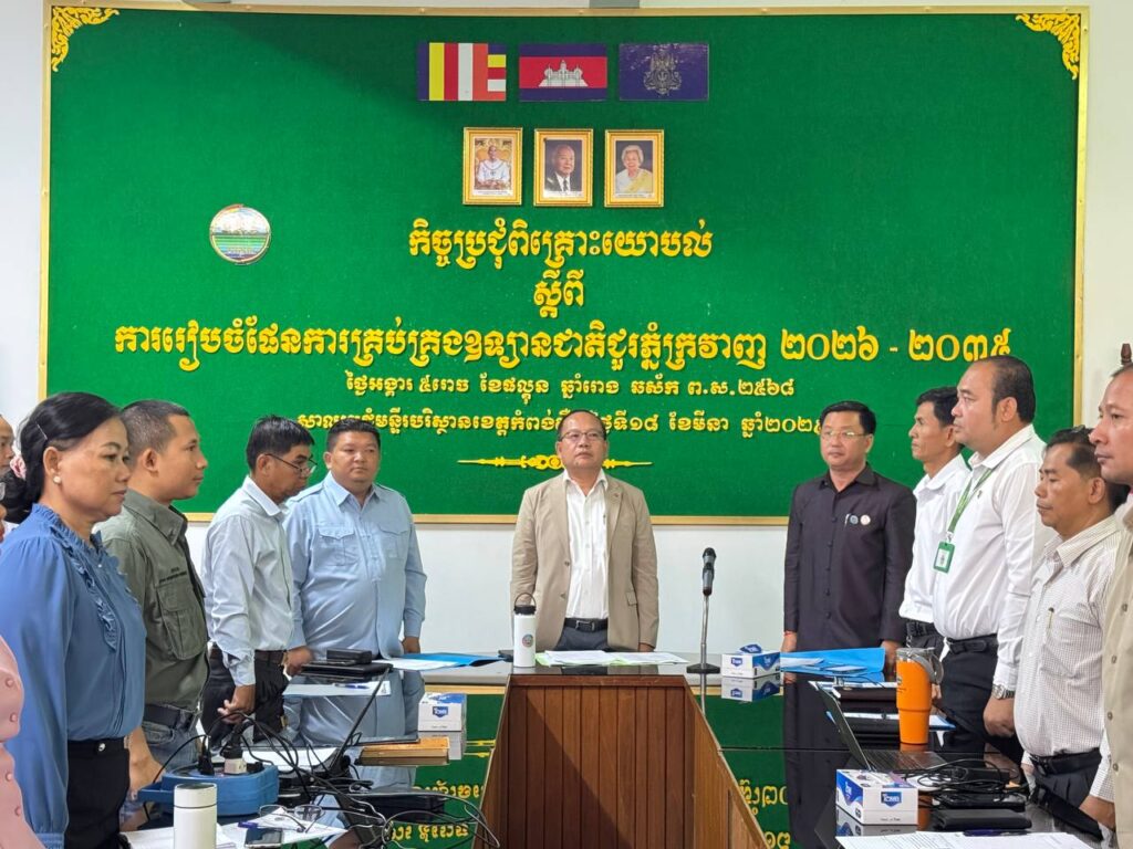 លោក ប៉ែន ប៊ុនឈួយ អភិបាលរងស្រុក និងលោក ស៊ឹម វឌ្ឍនា អនុប្រធានការិយាល័យនីតិកម្ម និងសម្រុះសម្រួលវិវាទមូលដ្ឋាន បានចូលរួមកិច្ចប្រជុំពិគ្រោះយោបល់ថ្នាក់ខេត្តស្ដីពី៖ ការរៀបចំផែនគ្រប់គ្រងឧទ្យានជាតិជួរភ្នំក្រវាញ ភូមិសាស្រ្តខេត្តកោះកុង ខេត្តពោធិ៍សាត់ ខេត្តព្រះសីហនុ ខេត្តកំពង់ស្ពឺ (២០២៥-២០៣៥) ក្រោមអធិបតីភាព ឯកឧត្តម ស្រី ស៊ុនលាង អគ្គនាយក នៃអគ្គនាយកដ្ឋានតំបន់ ការពារធម្មជាតិ ។