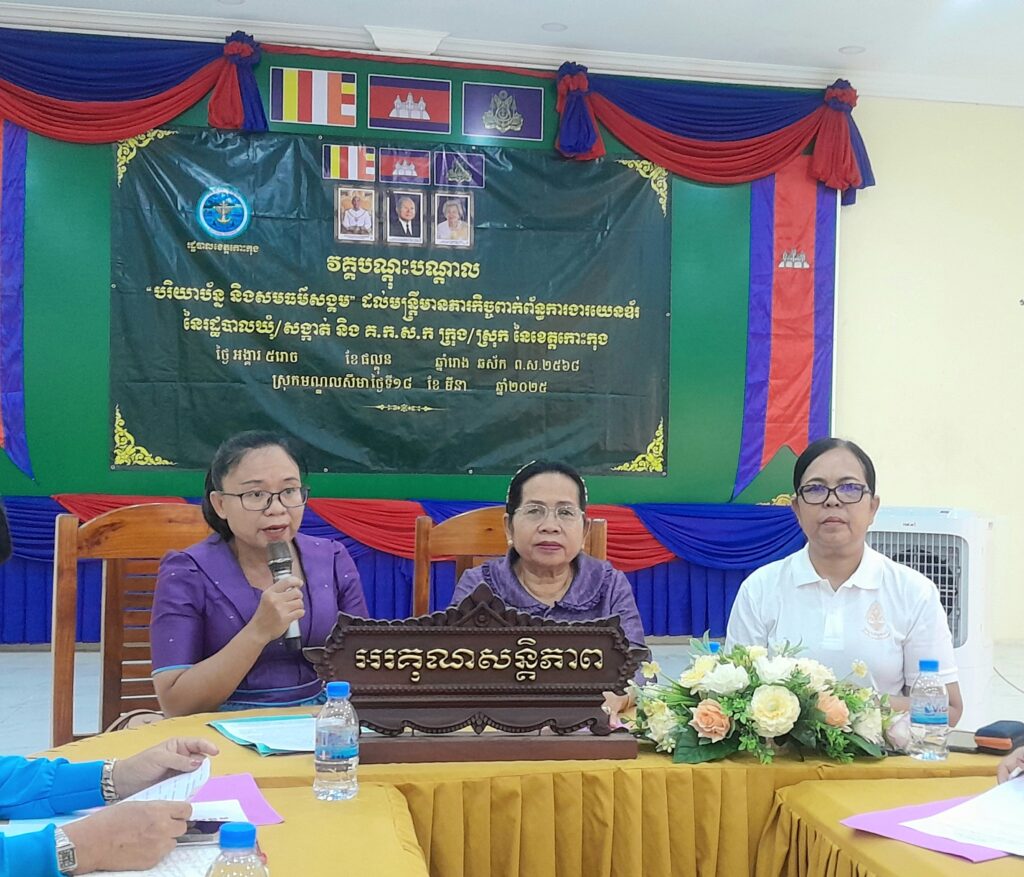វគ្គបណ្ដុះបណ្ដាលស្ដីពី “បរិយាបន្ន និងសមធម៌សង្គម” ដល់មន្រ្តីពាក់ព័ន្ធការងារយេនឌ័រ នៃរដ្ឋបាលឃុំ និងដល់គណៈកម្មាធិ ការពិគ្រោះយោបល់កិច្ចការស្ដ្រី និងកុមារ ស្រុកមណ្ឌលសីមា ក្រោមអធិបតីភាព÷