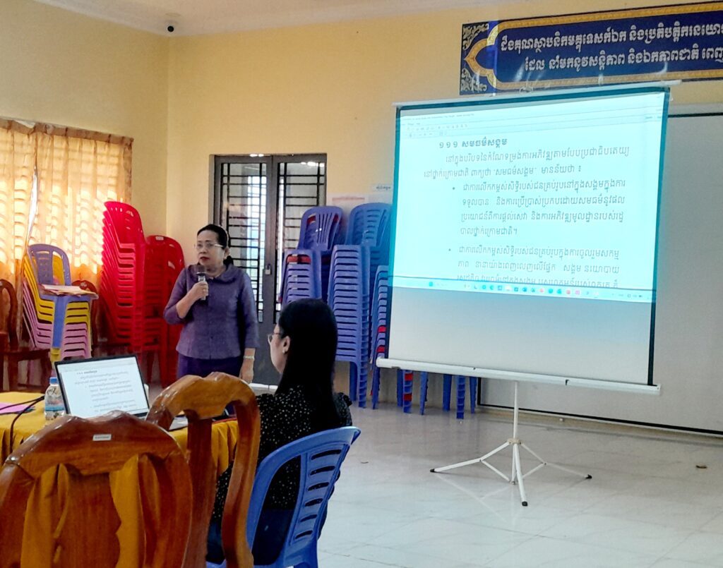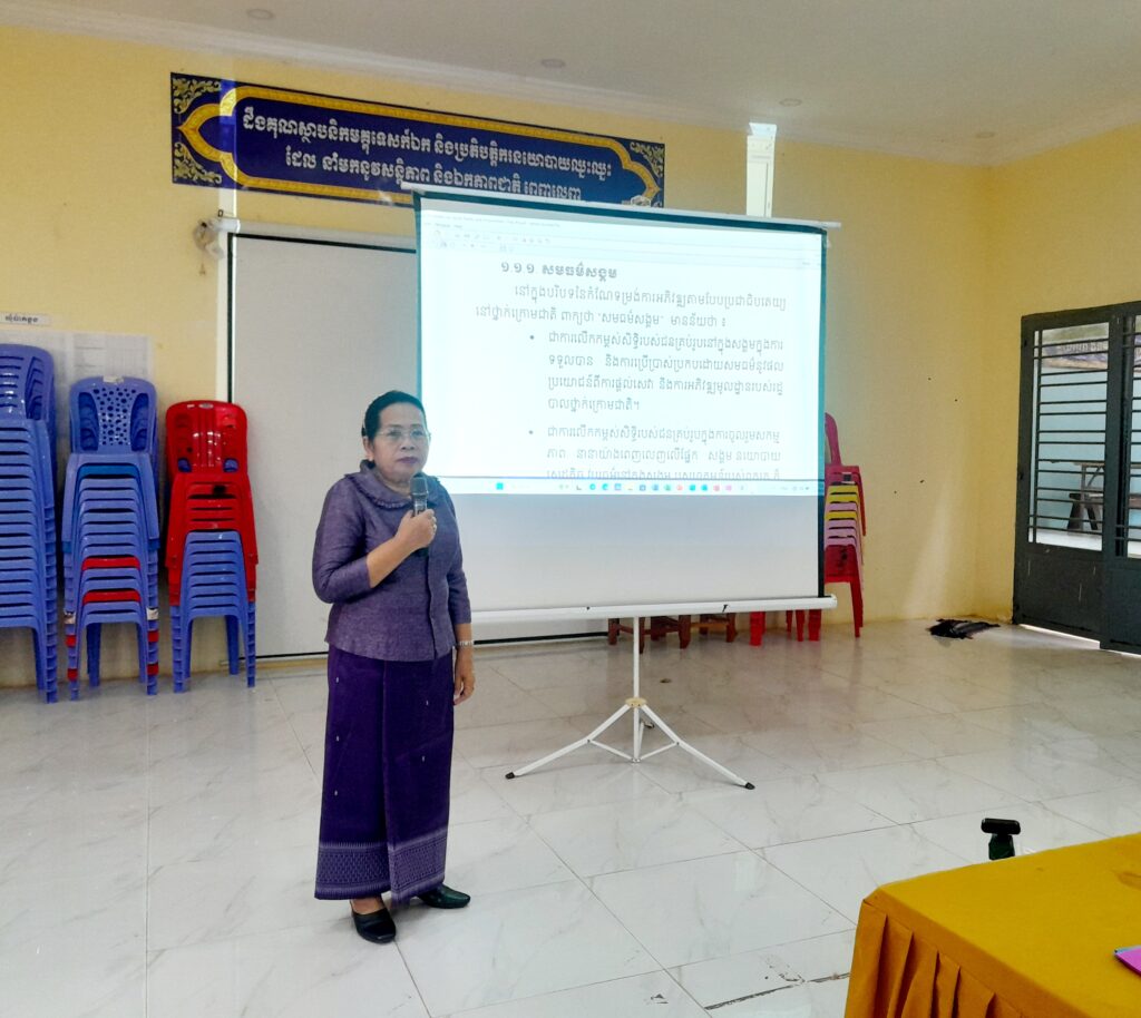 វគ្គបណ្ដុះបណ្ដាលស្ដីពី “បរិយាបន្ន និងសមធម៌សង្គម” ដល់មន្រ្តីពាក់ព័ន្ធការងារយេនឌ័រ នៃរដ្ឋបាលឃុំ និងដល់គណៈកម្មាធិ ការពិគ្រោះយោបល់កិច្ចការស្ដ្រី និងកុមារ នៅស្រុកមណ្ឌលសីមា