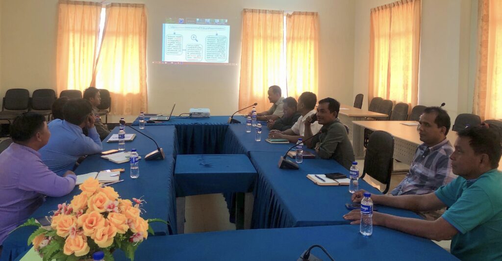 វេលាម៉ោង ០៨:០០ នាទីព្រឹក លោក ម៉ែន ឧត្តម ជំទប់ទី១ លោក ជៃ ឌឿ ជំនួយការរដ្ឋបាលឃុំ តំណាងលោក ហេង ពិសិដ្ឋស្មៀនឃុំ បានអញ្ជើញចូលរួម ក្នុងវគ្គបណ្តុះបណ្តាលស្តីពី ‘’ការពិនិត្យរួមគ្នាលើភាពសមស្របរបស់បុគ្គលដែលអាចមានសិទ្ធិទទួលដី’’ ក្រោមអធិបតីភាពឯកឧត្តម សរ សុវណ្ណ រដ្ឋមន្ត្រី ប្រតិភូអមនាយករដ្ឋមន្ត្រី និងជាប្រធានលេខាធិការដ្ឋាន ផ.ក.អ តាមប្រព័ន្ធនិម្មិតZoom របស់លេខាធិការដ្ឋាន ផ.ក.អ ដឹកនាំដោយលោក ទុំ នី អភិបាលរង នៃគណៈអភិបាលស្រុកថ្មបាំង នៅសាលប្រជុំសាលាស្រុកថ្មបាំង