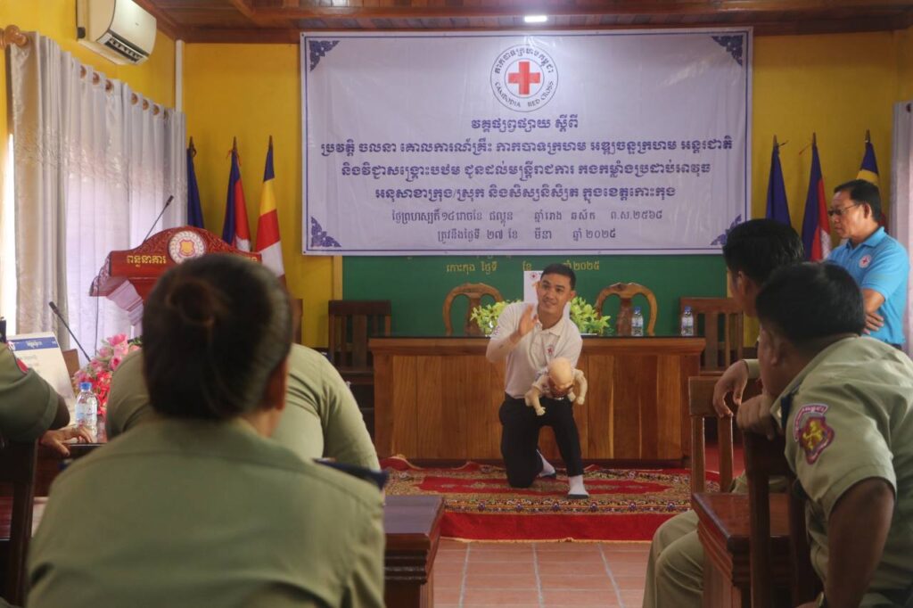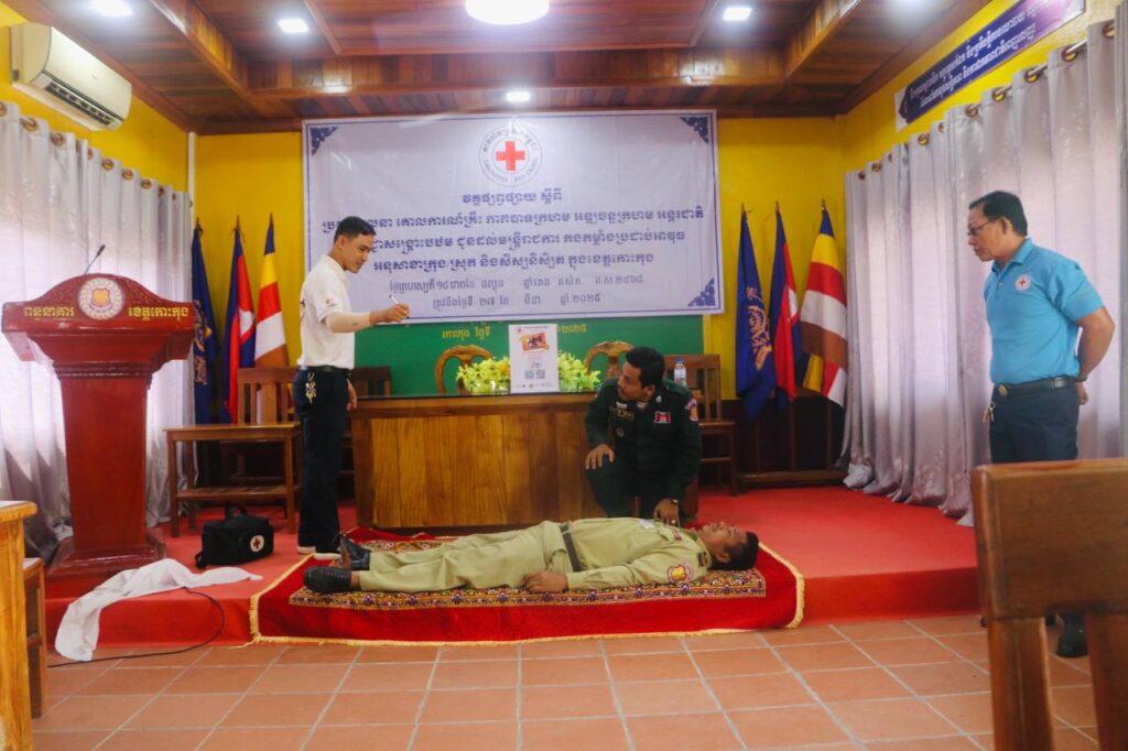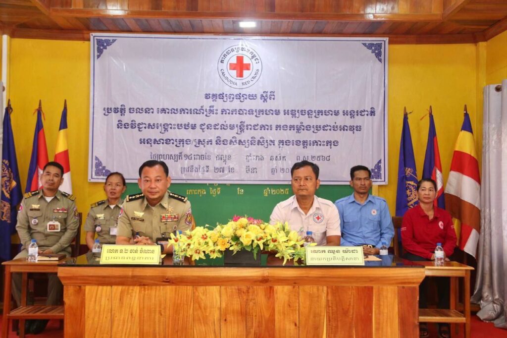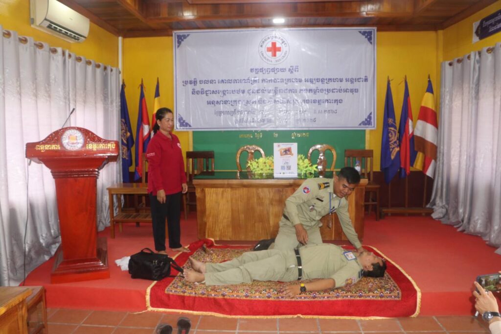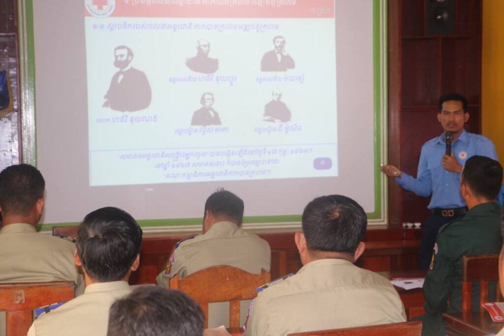 សាខា កក្រក ខេត្តកោះកុង ៖ នាព្រឹកថ្ងៃព្រហស្បត្តិ៍ ទី២៧ ខែមីនា ឆ្នាំ២០២៥ នេះលោកឧត្តមអគ្គានុរ័ក្សថ្នាក់លេខ២ ចាន់ ចំណាន ប្រធានពន្ធពន្ធនាគារខេត្តកោះកុង សហការជាមួយ លោក ឈួន យ៉ាដា នាយកប្រតិបត្តិសាខាកាកបាទក្រហមកម្ពុជា ខេត្តកោះកុង តំណាងខ្ពង់ខ្ពស់ លោកជំទាវ មិថុនា ភូថង ប្រធានគណៈកម្មាធិការសាខា បានអញ្ជើញចូលរួមជាគណៈអធិបតីក្នុងពិធីបើកវគ្គផ្សព្វផ្សាយពីប្រវត្តិចលនាកាកបាទក្រហម និងអឌ្ឍចន្ទក្រហម គោលការណ៍គ្រឹះ កាកបាទក្រហមកម្ពុជា ច្បាប់មនុស្សធម៌អន្តរជាតិ និងវិជ្ជាសង្គ្រោះបឋម ជូនដល់មន្ត្រីរាជការ នៃពន្ធនាគារខេត្តកោះកុង ដែលមានចូលរួមសរុបចំនួន២១នាក់ ( ស្រី៣នាក់ ) នៅសាលប្រជុំពន្ធនាគារខេត្ត។
