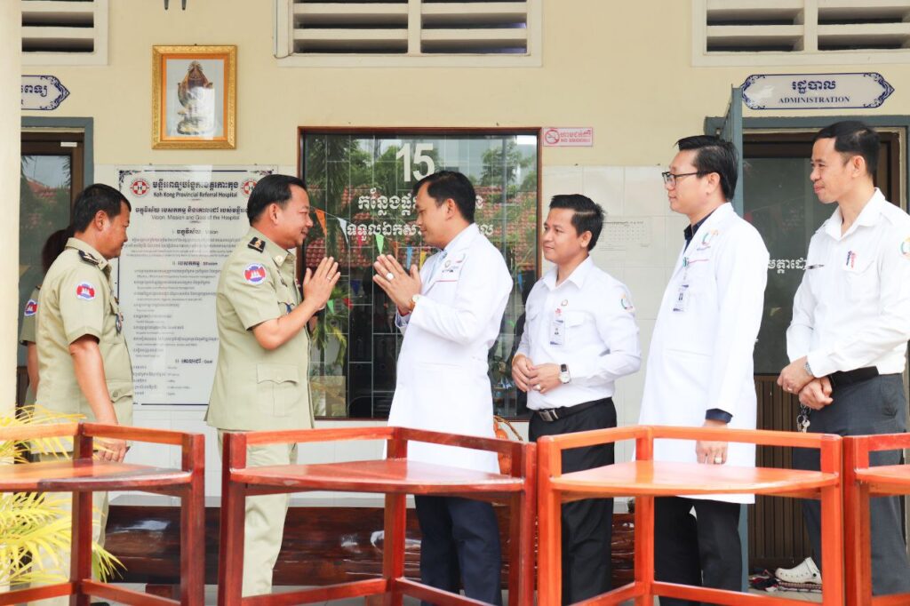 ប្រធានពន្ធនាគារ​ ខេត្ត​កោះកុង អញ្ជើញមកអបអរសាទរចំពោះមន្ទីរពេទ្យបង្អែកខេត្តកោះកុង និងឧបត្ថម្ភធ្នើរបីជ្រុងបួនថ្នាក់ ធ្វើពីឈើ ចំនួន ៥ ដល់មន្ទីរពេទ្យបង្អែកខេត្តកោះកុង ។