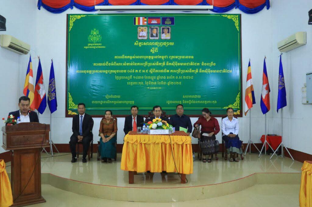 លោកស្រី ស៊ឹម សុខជា អនុប្រធានមន្ទីរសង្គមកិច្ច អតីតយុទ្ធជន និងយុវនីតិសម្បទាខេត្តកោះកុង បានចូលរួមសិក្ខាសាលាផ្សព្វផ្សាយស្តីពី ការលើកកម្ពស់អាហាររូបត្ថម្ភនៅកម្ពុជា ក្រោមប្រធានបទ «ការយល់ដឹងអំពីសារៈសំខាន់នៃការប្រើប្រាស់ទឹកត្រី ទឹកស៊ីអ៊ីវមានជាតិដែក» និងពង្រឹងការអនុវត្តប្រកាសអន្តរក្រសួងលេខ ០៤៨ ក.ជ.អ.ជ ស្តីពីការផលិត ការប្រើប្រាស់ទឹកត្រី ទឹកស៊ីអ៊ីវមានជាតិដែក នៅសាលប្រជុំសាខាកាកបាទក្រហមកម្ពុជាខេត្ត