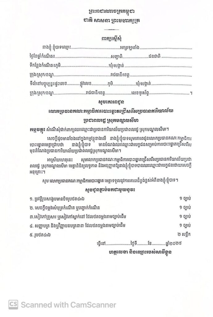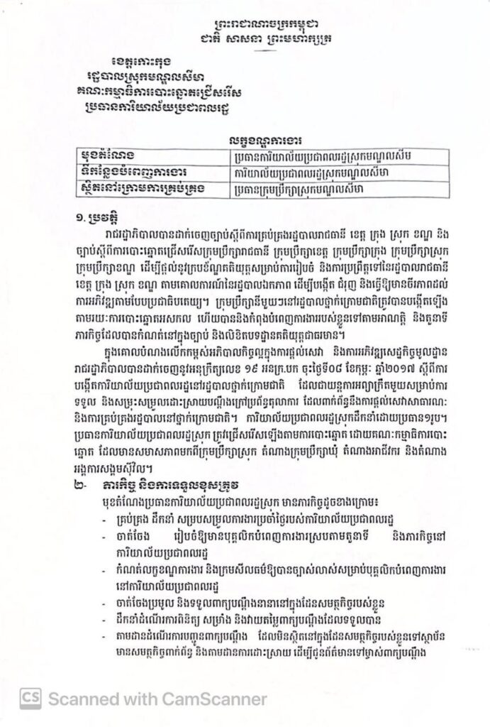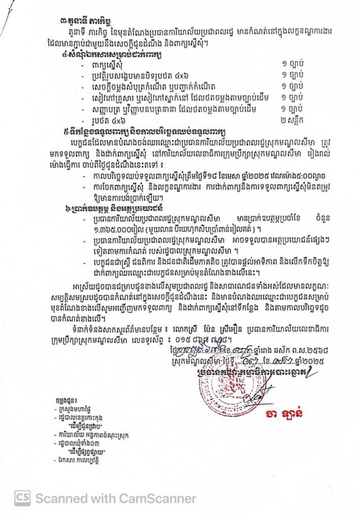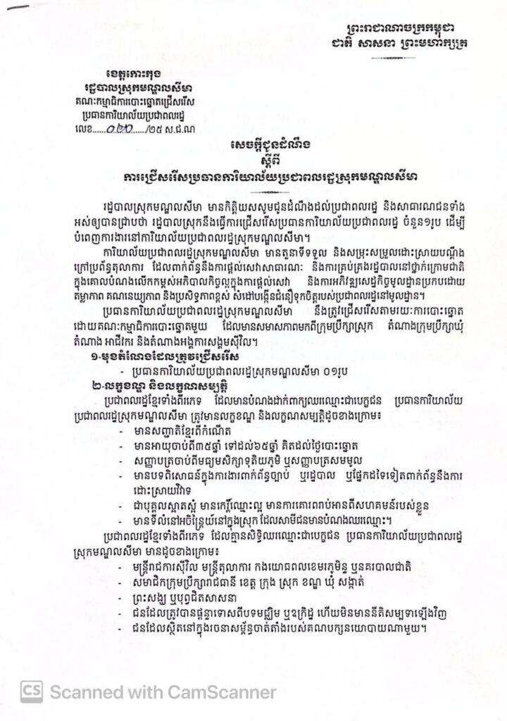 សេចក្ដីជូនដំណឹង ស្ដីពីការជ្រើសរើសប្រធានការិយាល័យប្រជាពលរដ្ឋស្រុកមណ្ឌលសីមា