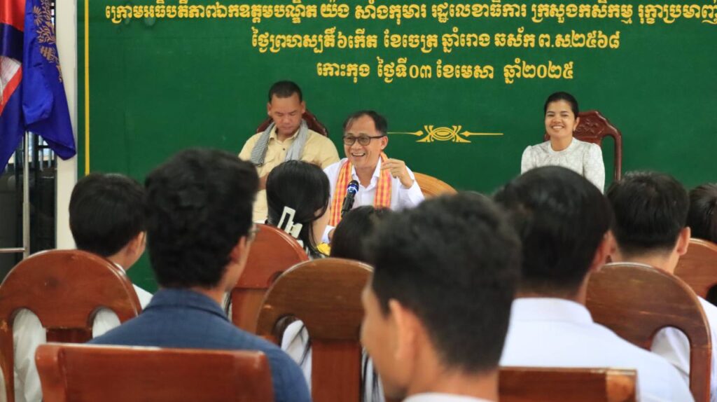 មន្ទីរកសិកម្ម រុក្ខាប្រមាញ់ និងនេសាទខេត្តកោះកុង ៖ លោកស្រី អែម សុធារ៉ា ប្រធានមន្ទីរ បានអញ្ជើញទទួលស្វាគមន៍ឯកឧត្តមបណ្ឌិត យ៉ង សាំងកុមារ រដ្ឋលេខាធិការក្រសួងកសិកម្ម រុក្ខាប្រមាញ់ និងនេសាទ អញ្ជើញជាអធិបតីដឹកនាំកិច្ចប្រជុំ តម្រង់ទិសការងារជាមួយមន្ត្រីកសិកម្មឃុំ ទើបតែប្រលងជាប់ថ្មី ទូទាំងខេត្តកោះកុង
