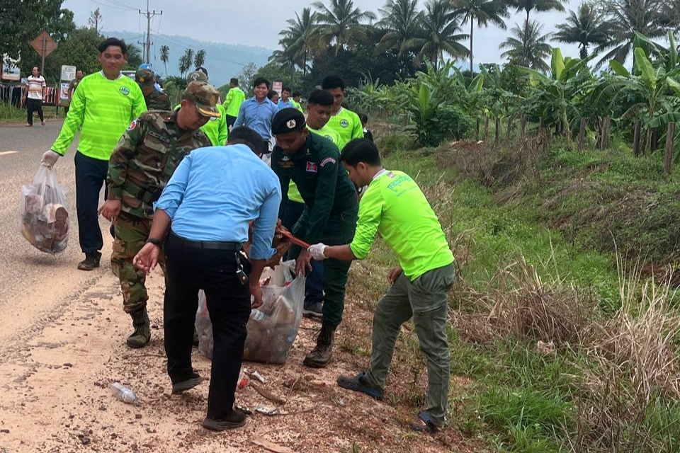លោក ផេង ផល អភិបាលស្ដីទីស្រុកថ្មបាំង បានអញ្ជើញដឹកនាំ សម្អាតអនាម័យបរិស្ថានចាប់ពីសាលាស្រុកថ្មបាំង ដល់រង្វង់មូលថ្មបាំង ដែលមានការចូលរួមពី អភិបាលរង កងកម្លាំងទាំង៣ មន្ត្រីឧទ្យានុរក្ស រដ្ឋបាលឃុំឬស្សីជ្រុំ មន្ត្រីសាលាស្រុកថ្មបាំង ស.ស.យ.ក ស្រុក លោកគ្រូ អ្នកគ្រូ ព្រមទាំងសិស្សានុសិស្ស ស្ថិតនៅឃុំឬស្សីជ្រុំ ស្រុកថ្មបាំង ខេត្តកោះកុង។