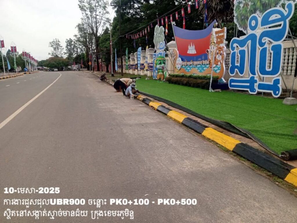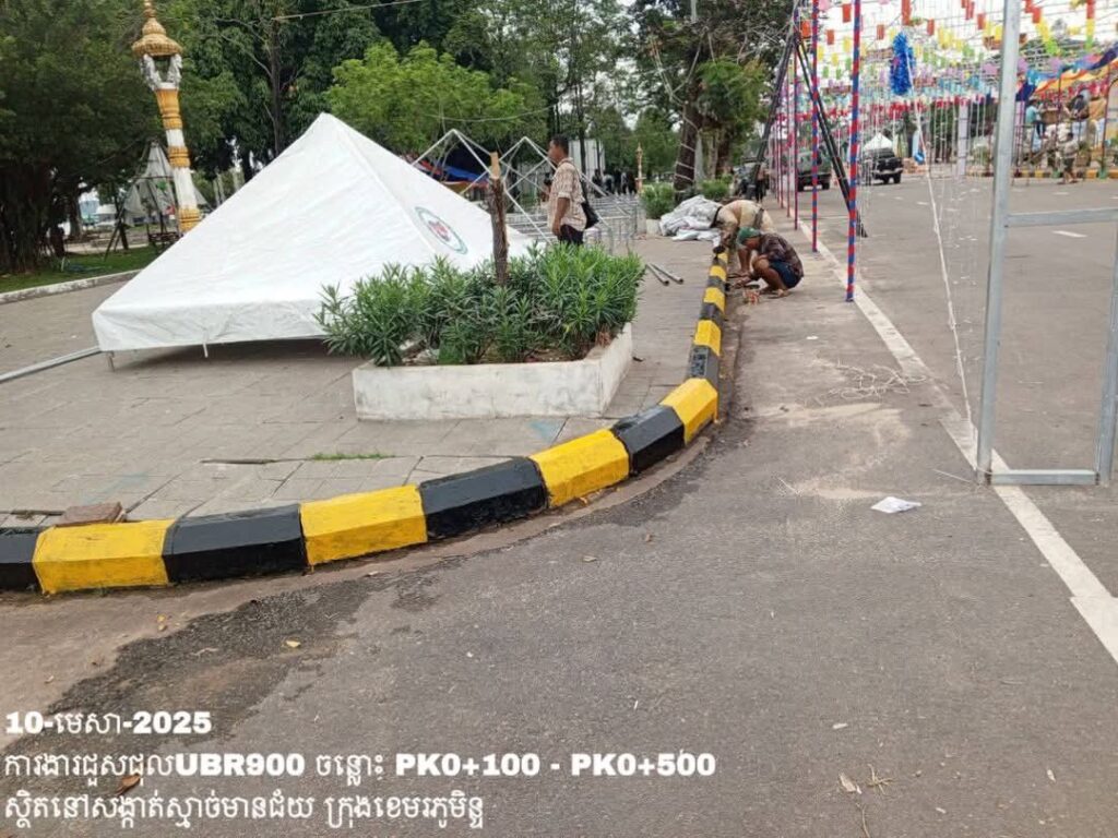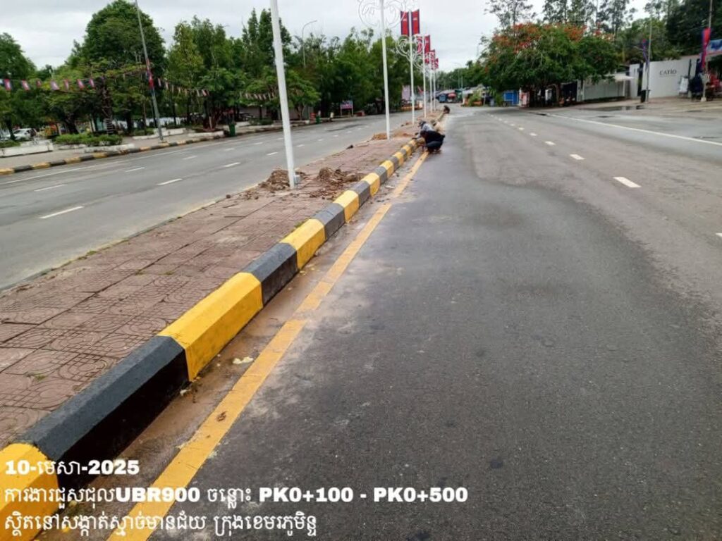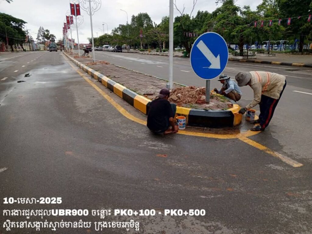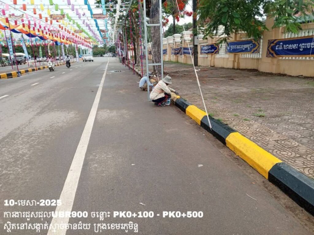 -បន្តថែទាំប្រចាំលើផ្លូវក្រុងលេខ900 សង្កាត់ស្មាច់មានជ័យ ក្រុងខេមរភូមិន្ទ ការងារលាបខឿនផ្លូវ ត្រង់ចន្លោះ PK0+100 – PK0+500។