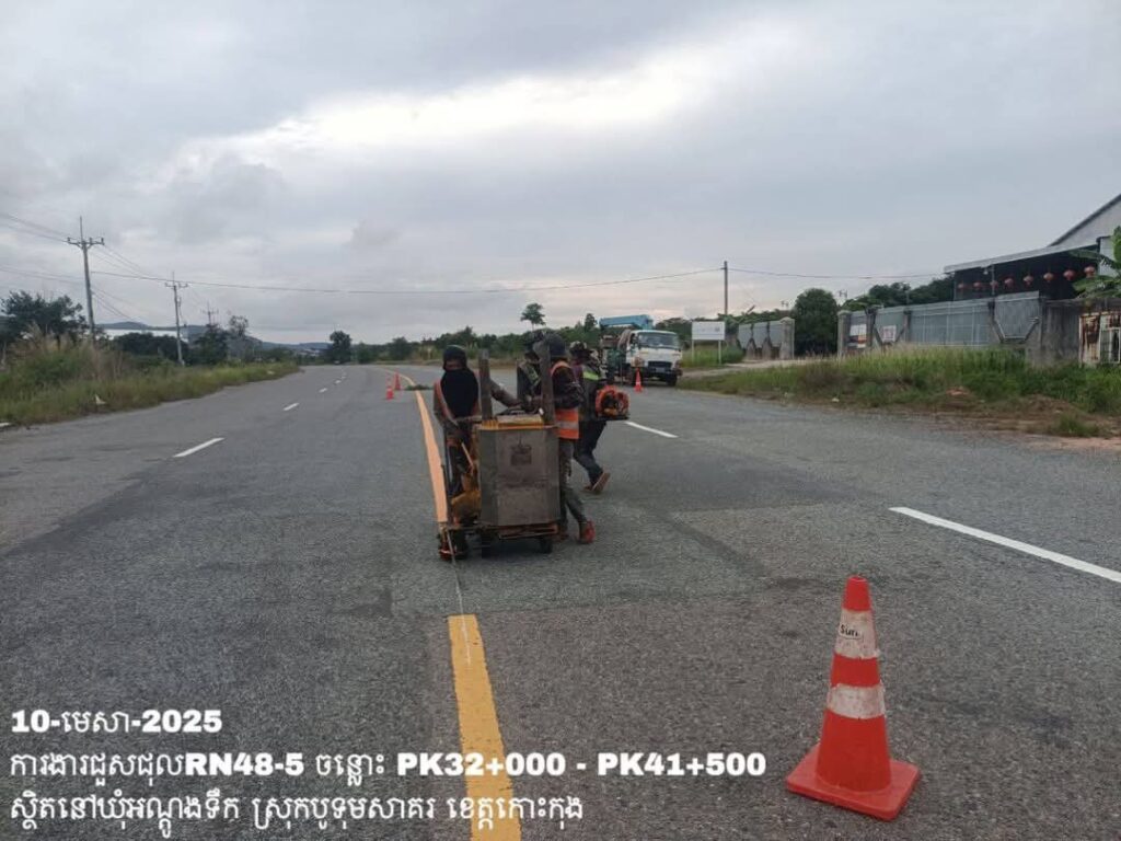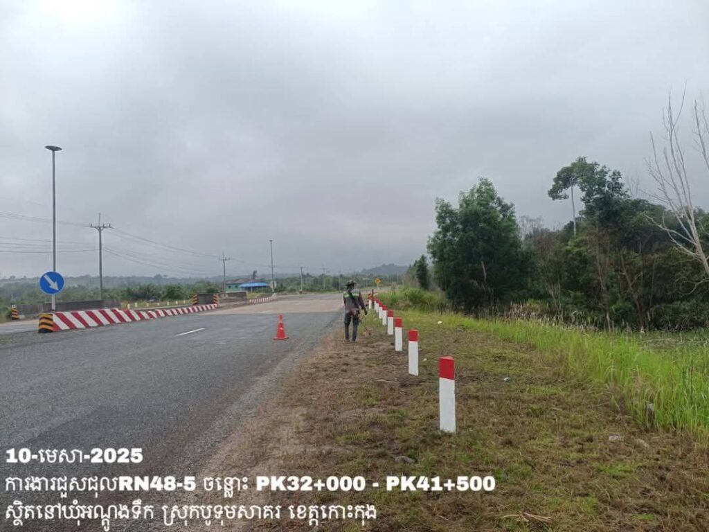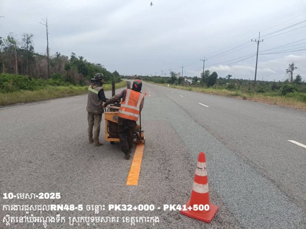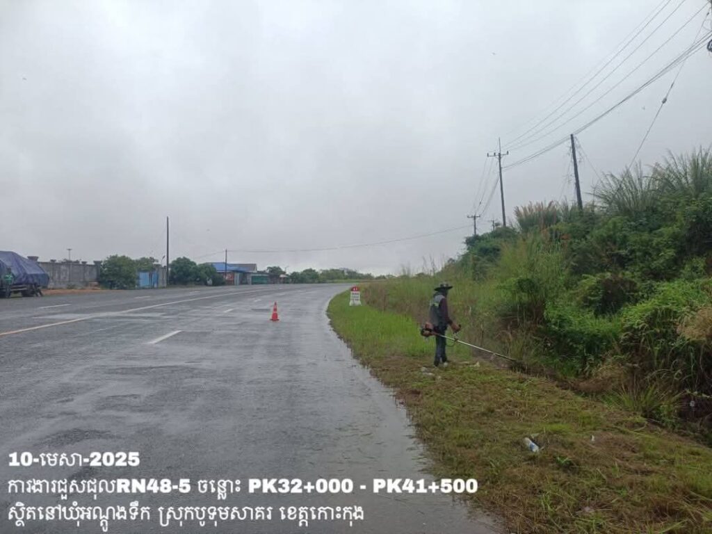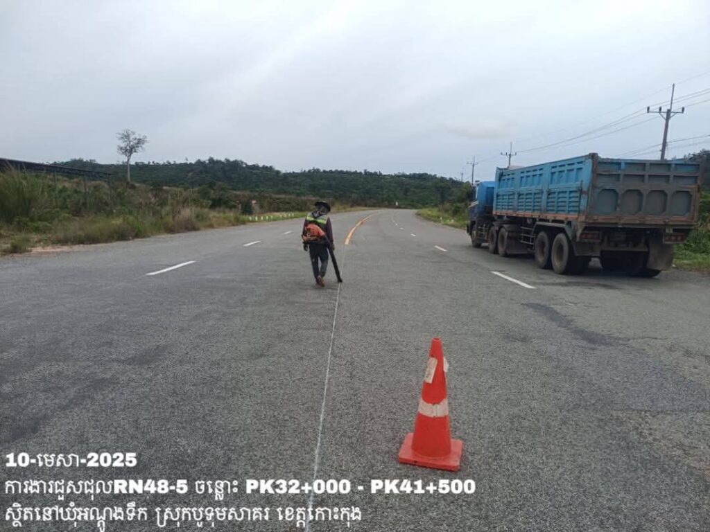 -បន្តថែទាំប្រចាំលើផ្លូវជាតិលេខ48-5 ឃុំអណ្ដូងទឹក ស្រុកបូទុមសាគរ ខេត្តកោះកុង ការងារអ៊ុតគំនូសចរាចរណ៍ និងសម្អាតរុក្ខជាតិសងខាងផ្លូវ ត្រង់ចន្លោះ PK32+000 – PK41+500។