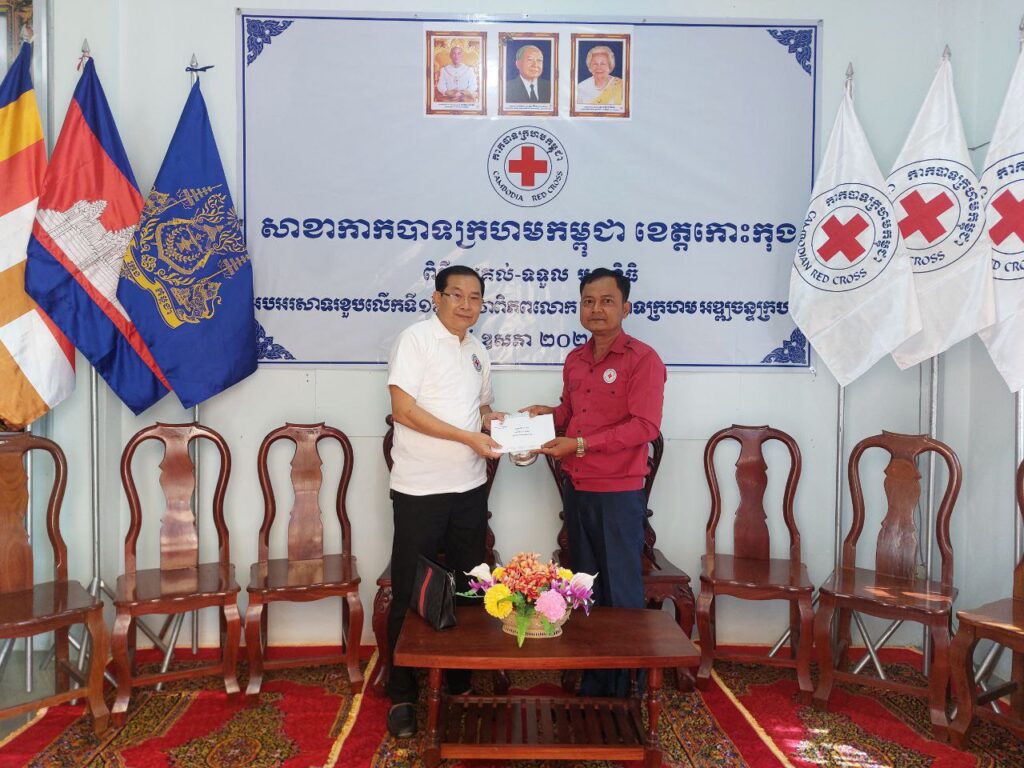បរិច្ចាគថវិកាចំនួន ៥០ម៉ឺនរៀល ជូនសាខាកាកបាទក្រហមកម្ពុជាខេត្តកោះកុង ដើម្បីអបអរទិវា ៨ ឧសភា ២០២៥ ក្នុងឱកាសខួបទី១៦២ ទិវាពិភពលោកកាកបាទក្រហម និងអឌ្ឍចន្ទក្រហម ក្រោមប្រធានបទ «រួមគ្នាស្ម័គ្រចិត្ត ដើម្បីសហគមន៍មានសុខភាពល្អ និងមានភាពធន់នឹងអាកាសធាតុ»។