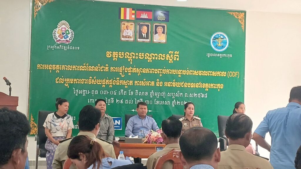 លោក ប៉ែន សុផាត អភិបាលរងស្រុកមណ្ឌលសីមា បានអញ្ជើញចូលរួមវគ្គបណ្តុះបណ្តាល ស្តីពីការអនុវត្តគោលការណ៍ណែនាំជាតិ ការផ្ទៀងផ្ទាត់ស្ថានភាពបញ្ចប់ការបន្ទោបង់ពាសវាលពាសកាល (ODF) ដល់ក្រុមការងារវិស័យផ្គត់ផ្គង់ទឹកស្អាត ការសំអាត និងអនាម័យជនបទ នៅខេត្តកោះកុង
