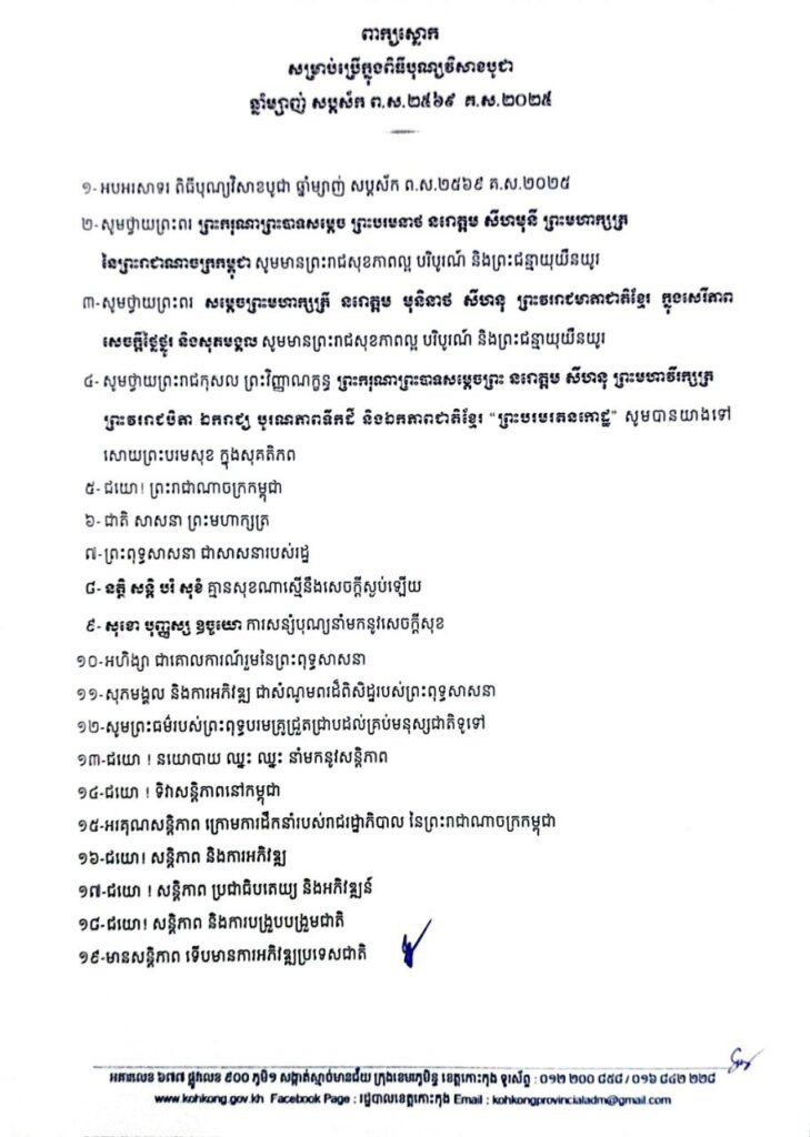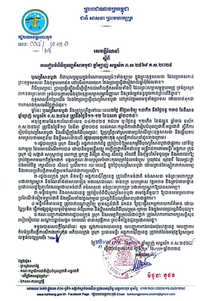 សេចក្តីណែនាំ ស្តីពីការរៀបចំពិធីបុណ្យវិសាខបូជា ឆ្នាំម្សាញ់ សប្តស័ក ព.ស.២៥៦៩ គ.ស.២០២៥