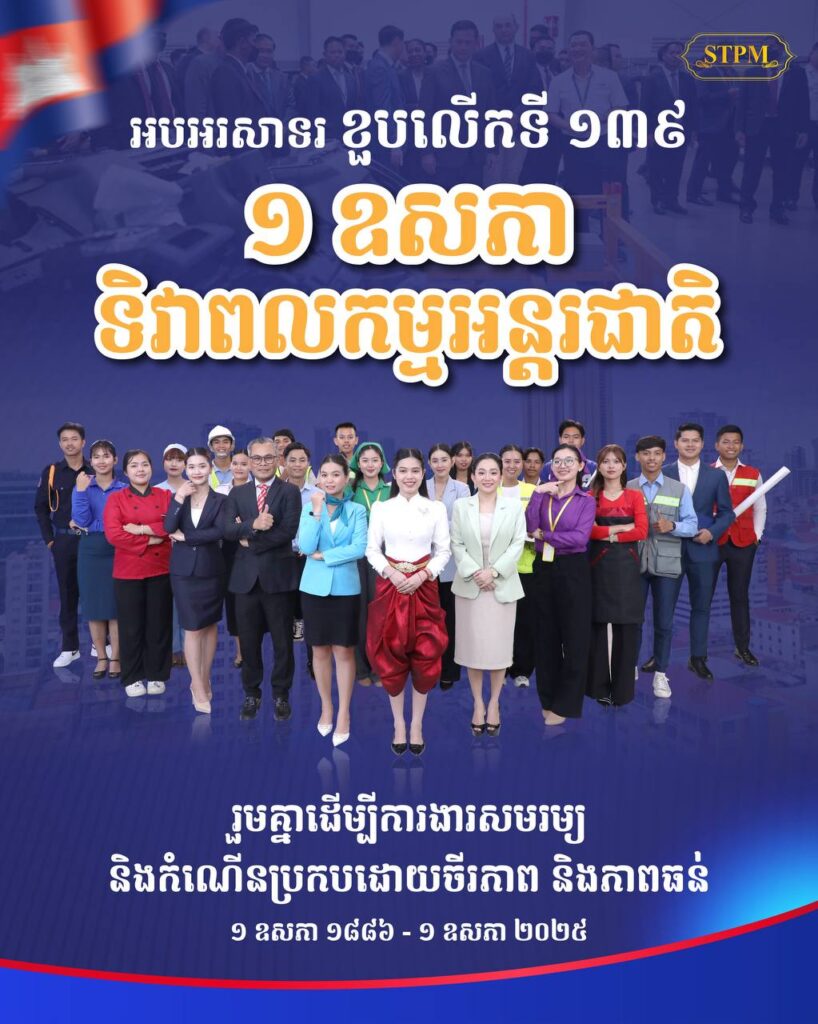 អបអរសាទរ ទិវាពលកម្មអន្តរជាតិ ខួបលើកទី១៣៩ ក្រោមប្រធានបទ “រួមគ្នាដើម្បីការងារសមរម្យ និងកំណើនប្រកបដោយចីរភាព និងភាពធន់” ១ ឧសភា ១៨៨៦ – ១ ឧសភា ២០២៥