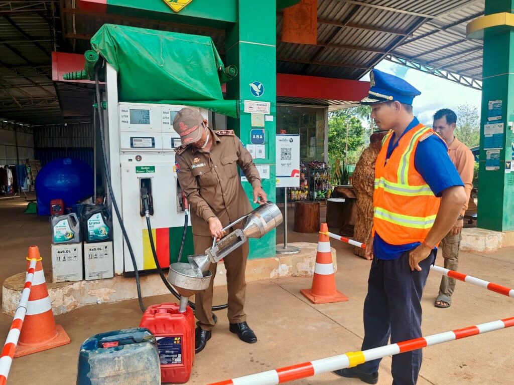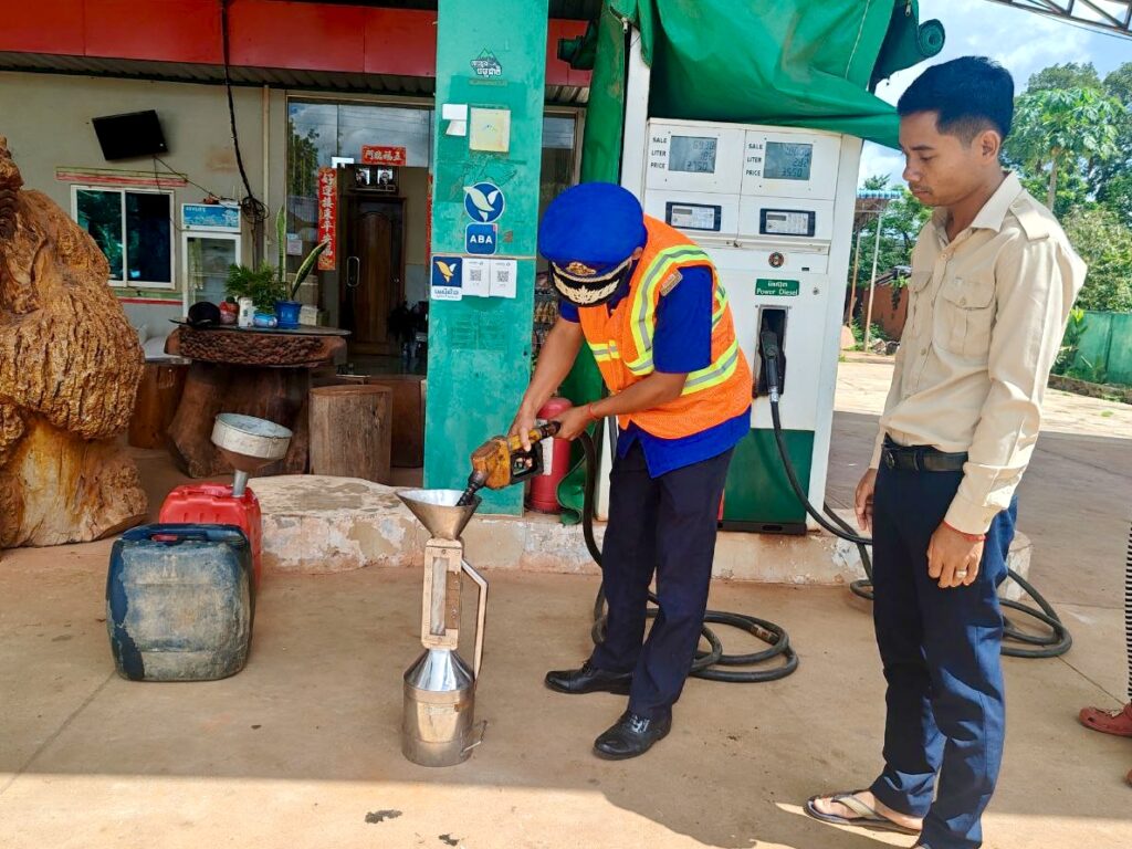 លោក ភ្លួង សួង ប្រធានការិយាល័យសេដ្ឋកិច្ច និងអភិវឌ្ឍន៍សហគមន៍ បានចូលរួមសហការជាមួយមន្ត្រីជំនាញអង្គភាពច្រកចេញចូលតែមួយ នៃរដ្ឋបាលខេត្តកោះកុង ចុះត្រួតពិនិត្យផ្ទៀងផ្ទាត់ឧបករណ៍បែងចែកវត្ថុរាវ (ប្រេងឥន្ធន:) របស់ម្ចាស់ស្ថានីយប្រេងឥន្ធនៈ ចំនួន១កន្លែង នៅក្នុងឃុំឬស្សីជ្រុំ ស្រុកថ្មបាំង ខេត្តកោះកុង ដើម្បីធានាឱ្យផលប្រយោជន៍រវាងអ្នកផ្គត់ផ្គង់ និងអ្នកប្រើប្រាស់ដើម្បីទប់ស្កាត់រាល់បទល្មើស នៃការកេងបន្លំខ្នាតឧបករណ៍មាត្រាសាស្រ្ត។