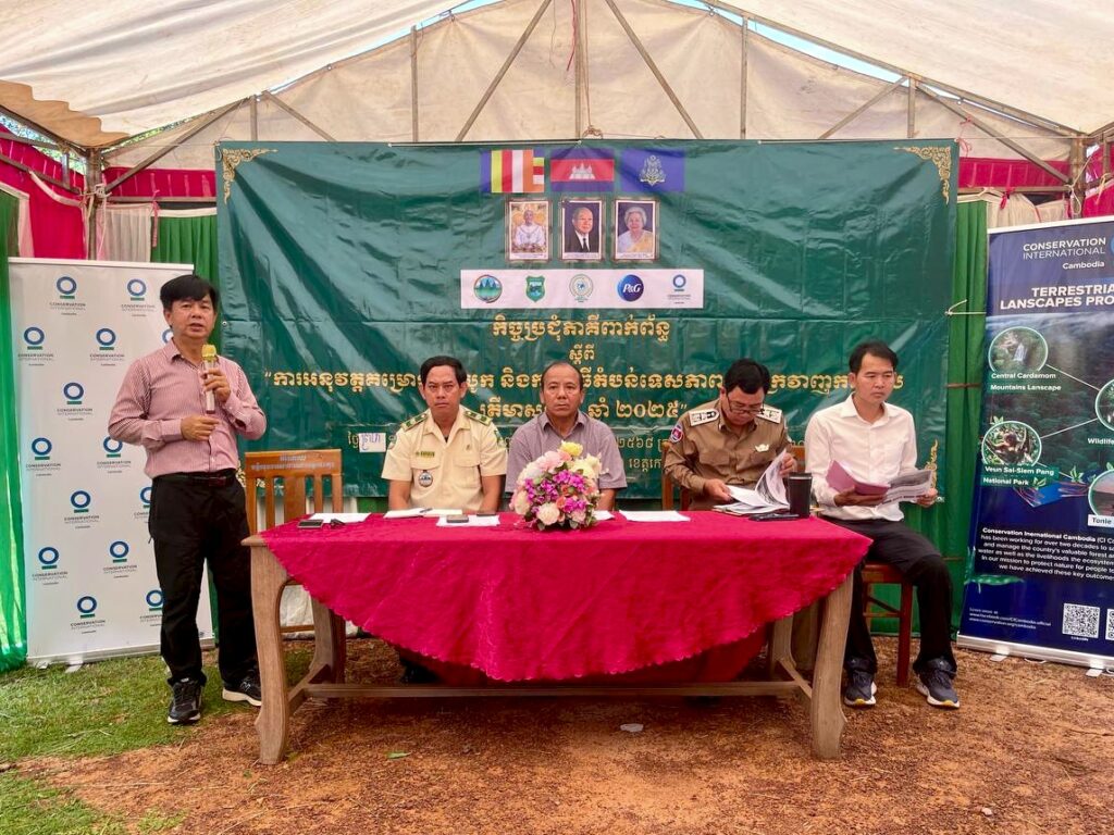 លោក ទុំ នី អភិបាលរង នៃគណៈអភិបាលស្រុកថ្មបាំង បើអញ្ជើញជាគណៈអធិបតីក្នុងកិច្ចប្រជុំត្រីមាសទី១ ឆ្នាំ២០២៥ ស្ដីពីវឌ្ឍនភាព នៃការអនុវត្តគម្រោងរេដបូក និងកម្មវិធីតំបន់ទេសចរណ៍ជួរភ្នំក្រវាញកណ្ដាល នៃឧទ្យានជាតិជួរភ្នំក្រវាញ តែប្រព្រឹត្តទៅនៅសាលាឃុំថ្មដូនពៅ នៃស្រុកថ្មបាំង ខេត្តកោះកុង។