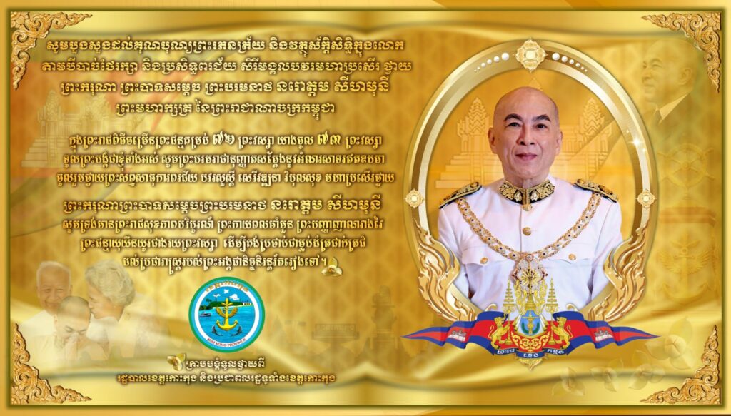 សារថ្វាយព្រះពរ សូមក្រាបបង្គំទូលថ្វាយ ព្រះករុណាព្រះបាទសម្តេចព្រះបរមនាថ នរោត្តម សីហមុនី ព្រះមហាក្សត្រ នៃព្រះរាជាណាចក្រកម្ពុជា ក្នុងឱកាសប្រកបដោយអភិសិរីមង្គល នៃព្រះរាជពិធីបុណ្យចម្រើន ព្រះជន្មាយុ គម្រប់ ៧២ យាងចូល ៧៣ ព្រះវស្សា