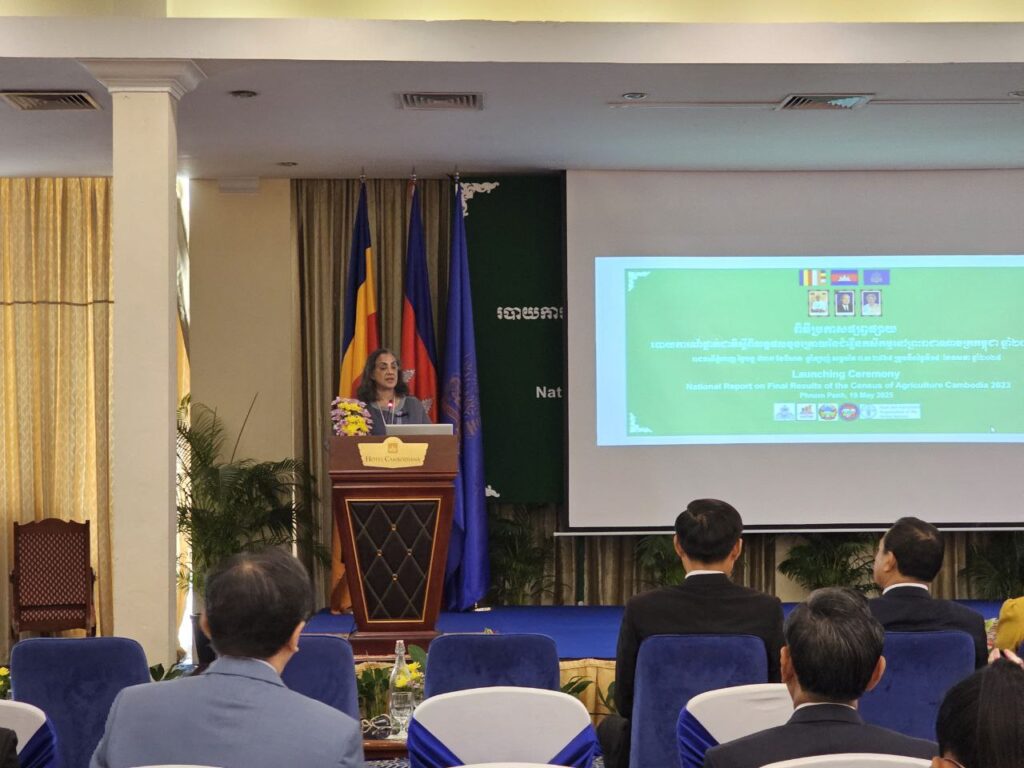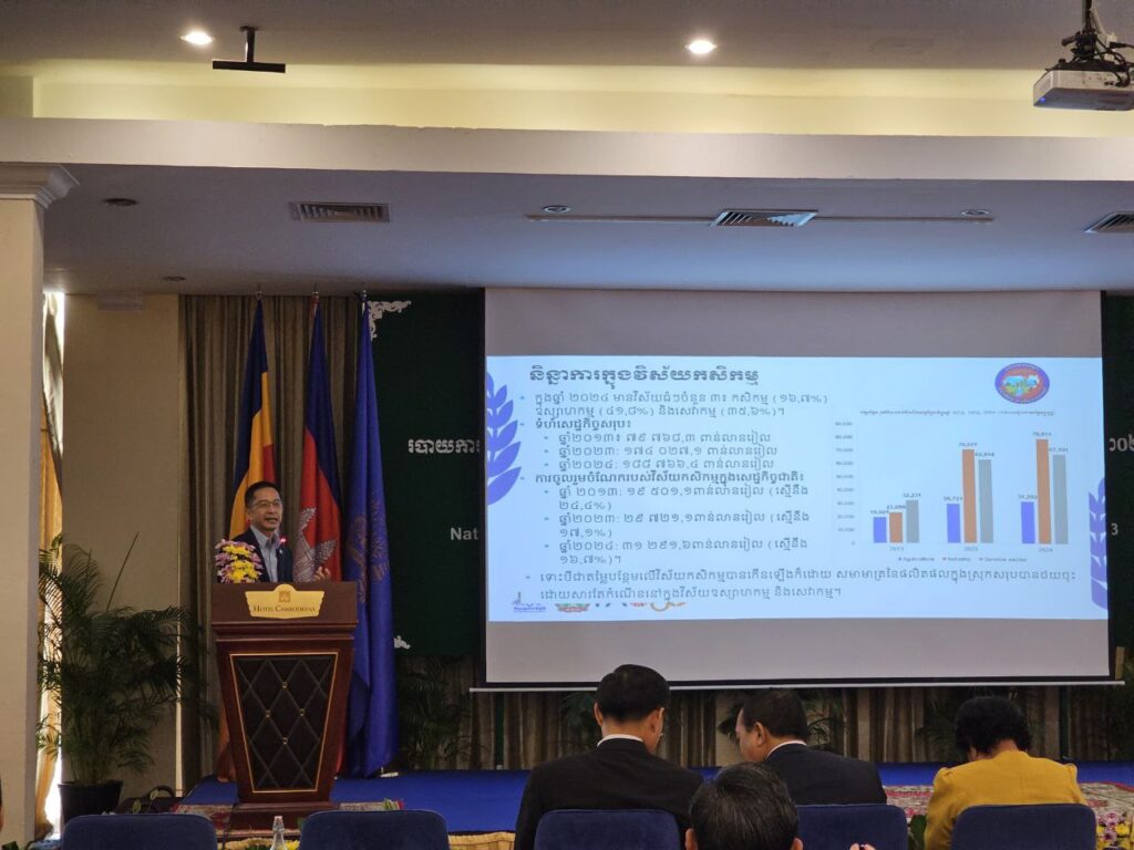 លោក ជា ស៊ីវត្រា ប្រធានមន្ទីរផែនការខេត្តកោះកុង បានអញ្ជើញចូលរួមក្នុងពិធីប្រកាសផ្សព្វផ្សាយរបាយការណ៍ថ្នាក់ជាតិស្តីពីលទ្ធផលចុងក្រោយនៃជំរឿនកសិកម្មនៅព្រះរាជាណាចក្រកម្ពុជា ឆ្នាំ២០២៣ ក្រោមអធិបតីដ៏ខ្ពង់ខ្ពស់ ឯកឧត្តម សុខ ចិន្តាសោភា ឧបនាយករដ្ឋមន្ត្រី តំណាងដ៏ខ្ពង់ខ្ពស់ សម្តេចមហាបវរធិបតី ហ៊ុន ម៉ាណែត នាយករដ្ឋមន្ត្រីនៃព្រះរាជាណាចក្រកម្ពុជា ព្រមទាំងមានការអញ្ជើញចូលរួមពី ឯកឧត្តម ប៊ិន ត្រឈៃ រដ្ឋមន្ត្រីក្រសួងផែនការ លោកស្រី Rebekah Bell តំណាងអង្គការស្បៀងអាហារ និងកសិកម្មនៃសហប្រជាជាតិ (FAO) ប្រចាំកម្ពុជា ឯកឧត្តម រិន វីរៈ ទីប្រឹក្សាផ្ទាល់សម្តេចមហាបវរធិបតី ហ៊ុន ម៉ាណែត នាយករដ្ឋមន្ត្រី នៃព្រះរាជាណាចក្រកម្ពុជា និងជារដ្ឋលេខាធិការក្រសួងផែនការ និងជាប្រធានក្រុមប្រឹក្សាភិបាលនៃវិទ្យាស្ថានជាតិស្ថិតិ, ឯកឧត្តម លោកជំទាវ លោក លោកស្រី ជាថ្នាក់ដឹកនាំជាន់ខ្ពស់នៃក្រសួងផែនការ ថ្នាក់ដឹកនិងមន្ត្រីជំនាញនៃវិទ្យាស្ថានជាតិស្ថិតិ និងតំណាងក្រសួង ស្ថាប័ន និងដៃគូអភិវឌ្ឍ ដែលប្រារព្ធឡើងនៅសណ្ឋាគារកាំបូឌីយ៉ាណា រាជធានីភ្នំពេញ។ ក្នុងពិធីនេះ ឯកឧត្តម សុខ ចិន្តាសោភា ឧបនាយករដ្ឋមន្ត្រី និងជាតំណាងដ៏ខ្ពង់ខ្ពស់បំផុត សម្ដេចមហាបវរធិបតី នាយករដ្ឋមន្ត្រី បានមានប្រសាសន៍ថា ទិន្នន័យជំរឿនកសិកម្ម ពិតជាមានសារៈសំខាន់ សម្រាប់អ្នករៀបចំគោលនយោបាយ និងផែនការ ព្រមទាំងភាគីពាក់ព័ន្ធ ឱ្យមើលឃើញស៊ីជម្រៅនៃរចនាសម្ព័ន្ធ, ជីវភាព, និងសមិទ្ធកម្ម នៃសកម្មភាពសេដ្ឋកិច្ចនីមួយៗ ជាពិសេសវិស័យកសិកម្ម តាមរយៈការវិភាគ ដែលប្រែក្លាយទិន្នន័យទៅជាព័ត៌មាន និងចំណេះដឹង។ ទិន្នន័យជំរឿនកសិកម្ម ក៏ជួយដល់ដំណើរការរៀបចំគោលនយោបាយ អភិវឌ្ឍន៍វិស័យកសិកម្មនៅកម្ពុជា ផែនការយុទ្ធសាស្ត្រអភិវឌ្ឍន៍ជាតិ ការបែងចែកធនធាន, ការធ្វើផែនការកម្មវិធីធុរកិច្ច និងការយល់ដឹងពីនិន្នាការទីផ្សារកសិកម្ម និងវិនិយោគ និងការជំរុញឱ្យមានការសម្រេចចិត្តដោយផ្អែកលើព័ត៌មានការគណនា កំណើនសេដ្ឋកិច្ច និងគោលដៅអភិវឌ្ឍន៍ប្រកបដោយចីរភាព កម្មវិធីអភិវឌ្ឍន៍សេដ្ឋកិច្ច បរិស្ថាន និងសង្គម សន្តិសុខស្បៀងរបស់រាជរដ្ឋាភិបាលកម្ពុជា និងគោលនយោបាយផ្សេងៗទៀតរបស់ក្រសួង ស្ថាប័ន អង្គការជាតិ និងអន្តរជាតិ។ របាយការណ៍លទ្ធផលនៃជំរឿនកសិកម្ម ឆ្នាំ២០២៣ បានបង្ហាញអំពីស្ថានភាពកសិកម្មនៅកម្ពុជា ត្រូវបានផ្លាស់ប្ដូរដល់របត់មួយគួរឱ្យកត់សម្គាល់តាមរយៈការប្រើប្រាស់បច្ចេកវិទ្យា ដើម្បីលើកកម្ពស់ផលិតភាពកសិកម្ម និងជីវភាពរស់នៅរបស់កសិករ ជាពិសេស គឺជាប្រភពទិន្នន័យមិនអាចខ្វះបាន សម្រាប់ការអនុវត្តយន្តការតាមដានត្រួតពិនិត្យ និងវាយតម្លៃ យុទ្ធសាស្ត្របញ្ចកោណ ដំណាក់កាលទី១ របស់រាជរ