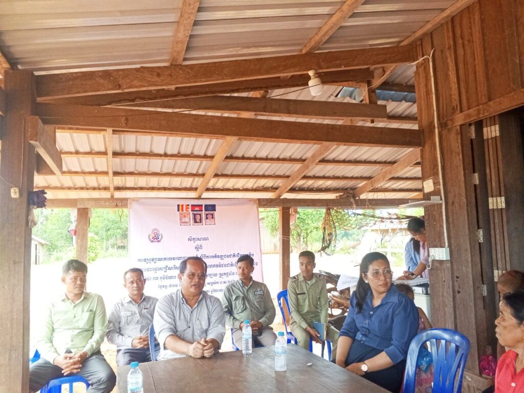 លោក ម៉ឹក ឡាំង ជំទប់ទី១ឃុំប្រឡាយ និងលោក ទិត្យ លី ជំទប់ទី២ឃុំប្រឡាយ ចូលរួម កិច្ចប្រជុំ ស្ដីពី ការផ្សព្វផ្សាយគោលនយោបាយជាតិ ស្តីពីការអភិវឌ្ឍជនជាតិដើមភាគតិច និងការបោះឆ្នោតជ្រើសរើសគណៈកម្មាធិការសហគមន៍ជនជាតិដើមភាគតិច ជង ភូមិសំរោង ភូមិចំណារ និងភូមិទ័ពប្រៃ ឃុំប្រឡាយ ស្រុកថ្មបាំង ខេត្តកោះកុង។