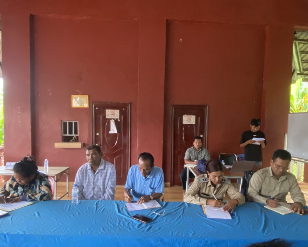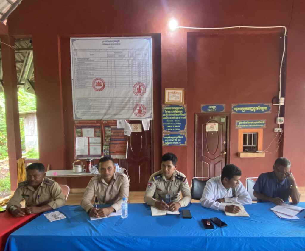 សមាសភាពចូលរួម: លោកមេភូមិ អនុភូមិ សមាជិកភូមិ និងកងកម្លាំងប៉ុស្តិ៍នគរបាលរដ្ឋបាលឃុំ ជំនួយការរដ្ឋបាល និងជំនួយការហិរញ្ញវត្ថុ សរុប១៣នាក់ស្រី២នាក់។