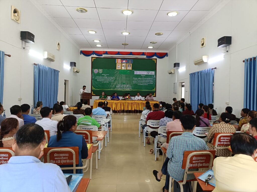 លោកស្រី អែម សុធារ៉ា ប្រធានមន្ទីរ បានអញ្ជើញចូលរួមជាគណៈអធិបតីក្នុងពិធីបើកវគ្គបណ្តុះបណ្តាល ស្តីពីបច្ចេកទេសក្រោយប្រមូលផល​ ផលផលិតផលជលផល និងបណ្តាញទីផ្សារដល់សមាជិកសហគមន៍នេសាទ ដើម្បីបន្សុំាទៅនឹងការប្រែប្រួលអាកាសធាតុក្នុងខេត្តតំបន់ឆ្នេរ រៀបចំឡើងដោយរដ្ឋបាលជលផល សហការជាមួយគម្រោង ការបន្សុំានិងភាពធន់នឹងអាកាសធាតុនៃសហគមន៍ពឹងអាស្រ័យផលលើធនធានជលផលនៅតំបន់ឆ្នេរនៃប្រទេសកម្ពុជា (Cam Adapt) មានការចូលរួមពីអនុប្រធាននាយកដ្ឋានបច្ចេកវិទ្យាកែច្នៃនិងគុណភាព មន្ត្រីអនុវត្តគម្រោង(Cam Adapt) មន្ទីរបរិស្ថានខេត្តកោះកុង រដ្ឋបាលឃុំជ្រោយស្វាយ រដ្ឋបាលឃុំពាមក្រសោប រដ្ឋបាលឃុំថ្មស និងមានការចូលរួមពីសមាជីកសហគមន៍នេសាទ ដែលប្រកបមុខរបរកែច្មៃផលផលិតជលផលក្នុងសហគមន៍នេសាទជ្រោយស្វាយ សហគមន៍នេសាទតំបន់ឆ្នេរសមុទ្រពាមក្រសោប និងសហគមន៍នេសាទតំបន់ឆ្នេរសមុទ្រថ្មស នៅសាលប្រជុំសាខាកាកបាទក្រហមខេត្តកោះកុង មានអ្នកចូលរួមសរុបប្រមាណ ៥១នាក់ ។