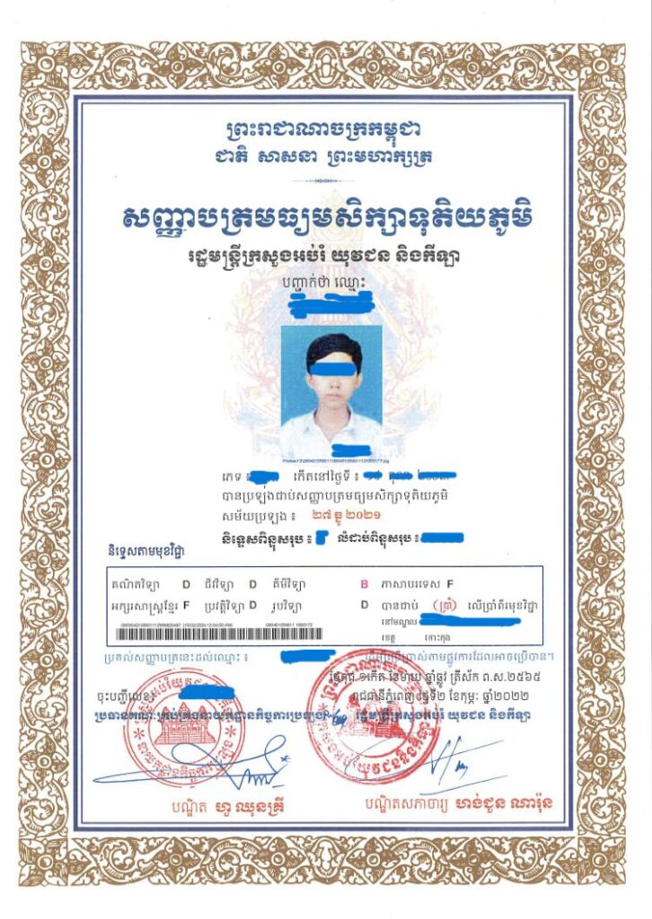សេចក្តីជូនដំណឹង ដល់ប្អូនៗ បេក្ខជនប្រឡងជាប់សញ្ញាបត្រមធ្យមសិក្សាទុតិយភូមិសម័យប្រឡង៖ ២៧ ធ្នូ ២០២១ អាចមកទទួលសញ្ញាបត្រចាប់ពីថ្ងៃជូនដំណឹងនេះតទៅ
