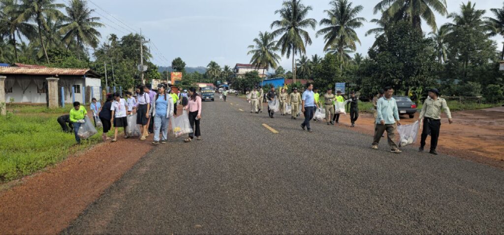 លោក ផល សុផាន់ណា អភិបាលរង នៃគណ:អភិបាលស្រុកថ្មបាំង អញ្ជើញចូលរួមទិវាបរិស្ថានជាតិ និងបរិស្ថានពិភពលោក ៥ មិថុនា ឆ្នាំ២០២៥ ក្រោមប្រធានបទ “ប្រយុទ្ធប្រឆាំងការបំពុលដោយផ្លាស្ទិក (Beat Plastic Pollution)” នៅតាមដងផ្លូវ និងទីសាធារណៈក្នុងឃុំឫស្សីជ្រុំ ស្រុកថ្មបាំង ខេត្តកោះកុង ដែលមានការអញ្ជើញចូលរួមពី លោក លោកស្រីសមាជិកក្រុមបឹក្សាស្រុក មន្រ្តីចំណុះរដ្ឋបាលស្រុក កងកម្លាំងទាំង៣ មន្រ្តីឧទ្យានជាតិជួរភ្នំក្រវាញ រដ្ឋបាលឃុំឬស្សីជ្រុំ ស.ស.យ.កស្រុក និងសិស្សានុសិស្ស។