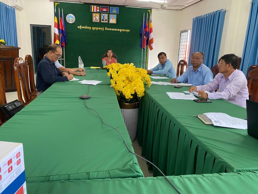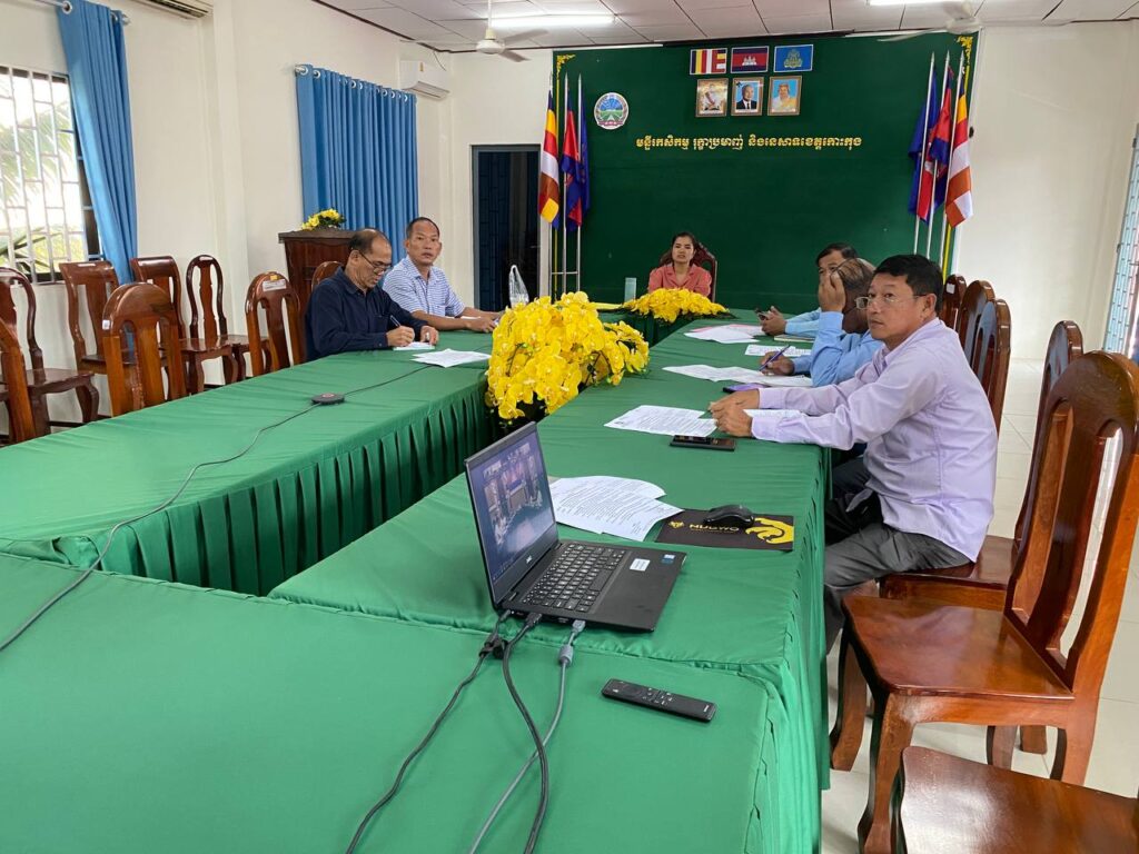 លោកស្រី អែម សុធារ៉ា ប្រធានមន្ទីរ និងលោក ឡាង គីរី អនុប្រធានមន្ទីរ បានដឹកនាំលោកនាយខណ្ឌរដ្ឋបាលព្រៃឈើកោះកុង នាយរងខណ្ឌរដ្ឋបាលជលផលកោះកុង លោកប្រធានការិយល័យរដ្ឋបាល-បុគ្គលិក លោកប្រធានការិយាល័យផែនការ-គណនេយ្យ និងលោកប្រធានការិយាល័យផលិតកម្ម និងបសុព្យាបាល ចូលរួមប្រជុំ ពិភាក្សា ដែលមានរបៀបវារៈដូចខាងក្រោម៖