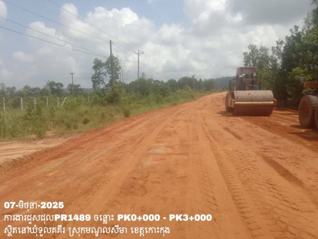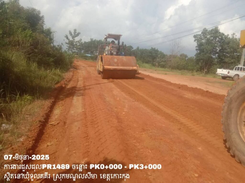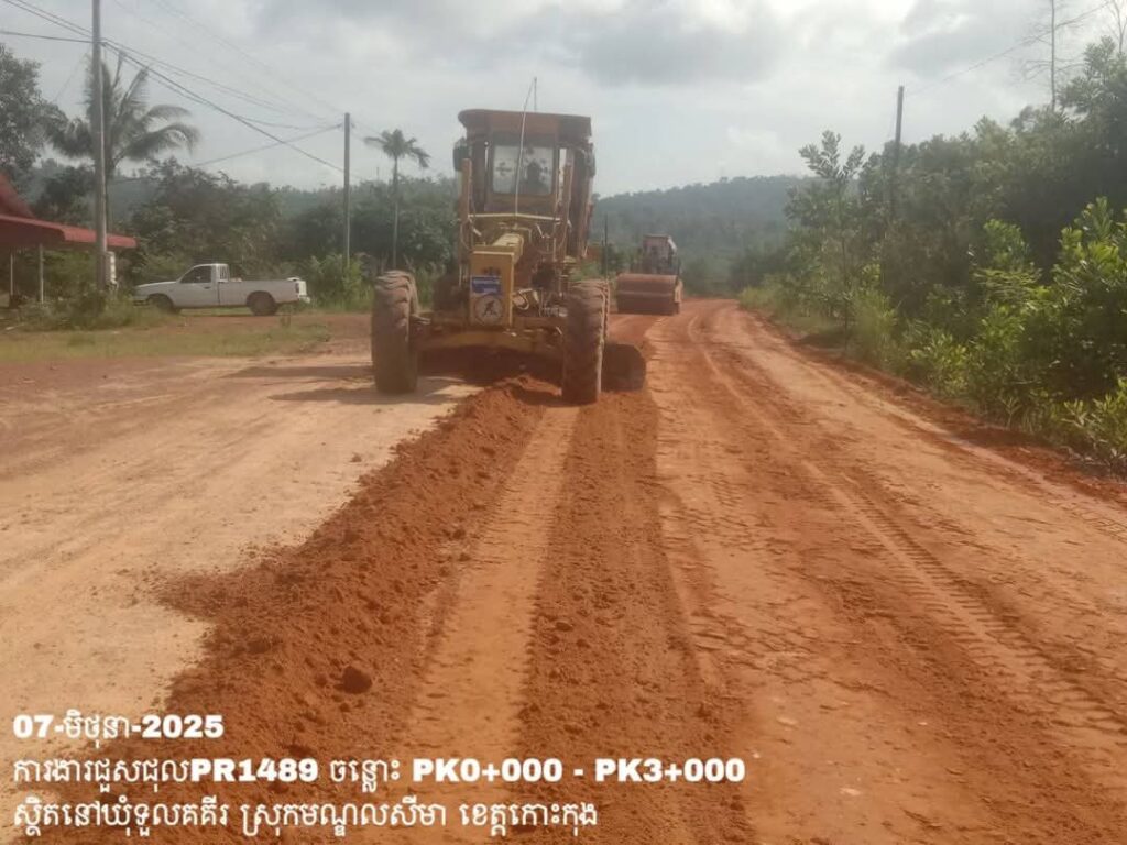 -បន្តការងារថែទាំប្រចាំលើផ្លូវខេត្តលេខ1489 ឃុំទួលគគីរ ស្រុកមណ្ឌលសីមា ខេត្តកោះកុង សកម្មភាពការងារ កៀរ កិន សម្រួលតួថ្នល់ ត្រង់ចន្លោះ PK0+000 – PK3+000។