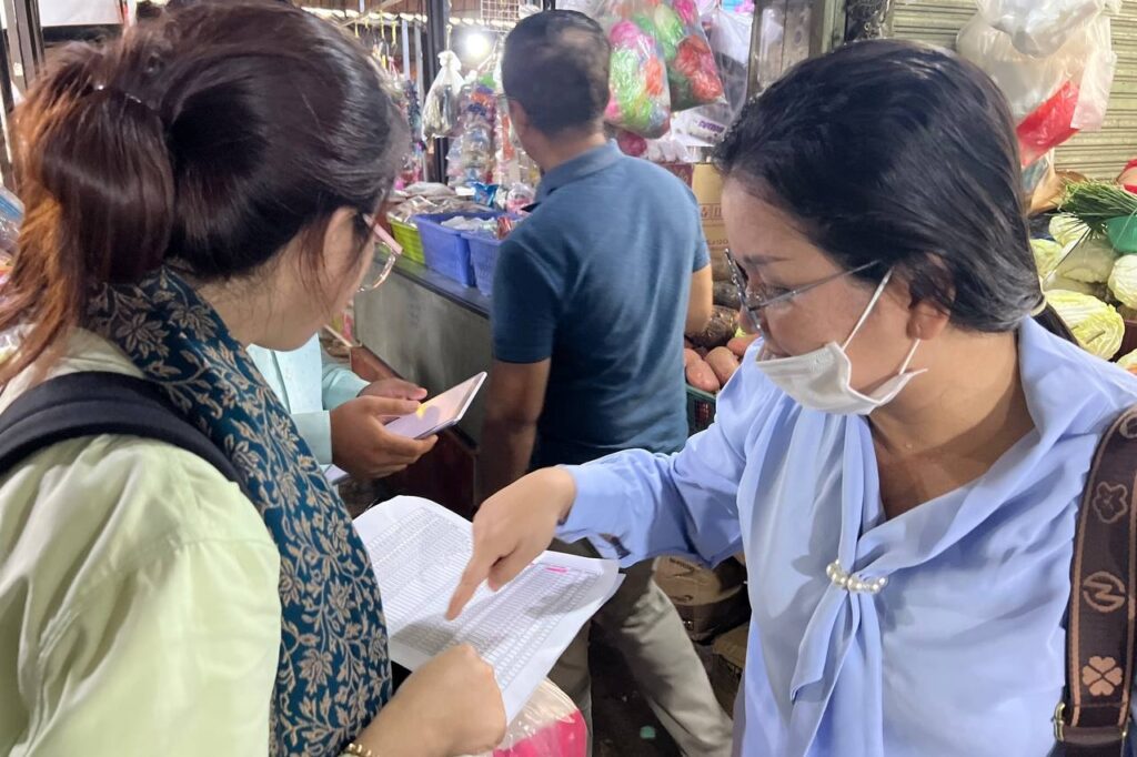 បន្ទាប់ពីកិច្ចប្រជុំ មន្រ្តីជំនាញផ្នែកស្រង់ថ្លៃទំនិញប្រើប្រាស់បានចុះអនុវត្តន៍ជាក់ស្តែង ការស្រង់ថ្លៃទំនិញប្រើប្រាស់នៅផ្សារដងទង់នៃខេត្តកោះកុង ដោយប្រើប្រាស់ថាប្លេត ដើម្បីសាកល្បងពីប្រសិទ្ធភាពនៃការប្រើប្រាស់ប្រព័ន្ធ CAPI។